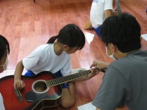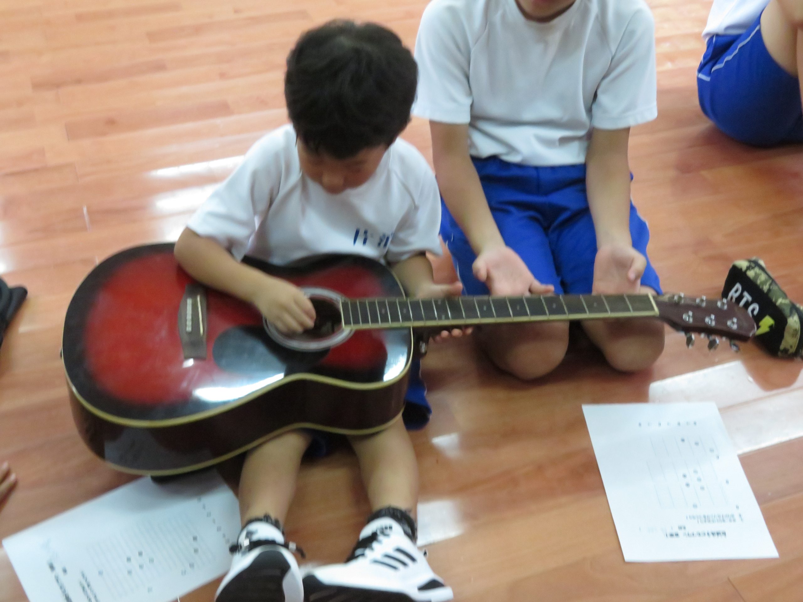 15日の放課後,放課後子どもプランとして音楽(ギター)教室がありました。講師は,本校の榎園先生でした。ギターの基本的なコードなど実践を交えながら児童と一緒に取り組んでいました。みんな楽しそうにギター演奏を行っていました。有意義な時間になりました。