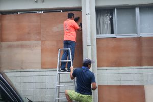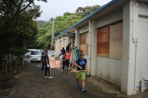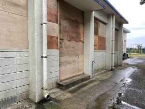 昨日16日の放課後,台風14号対策として全校生徒でプランターやバケツなど飛散しそうな物を校舎内に運びました。 いつもは外の靴箱にあるみんなの長靴たちも避難させました。 本日17日は,朝早くから地域の方達が学校の集会室や給食室にコンパネを打ち付けてくださいました。本当にありがとうございます。 今回の台風はとても勢力が大きいと報道されています。 皆様も,備えを十分になさって安全にお過ごしください。