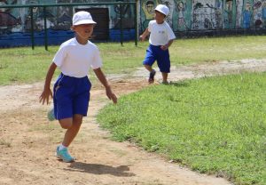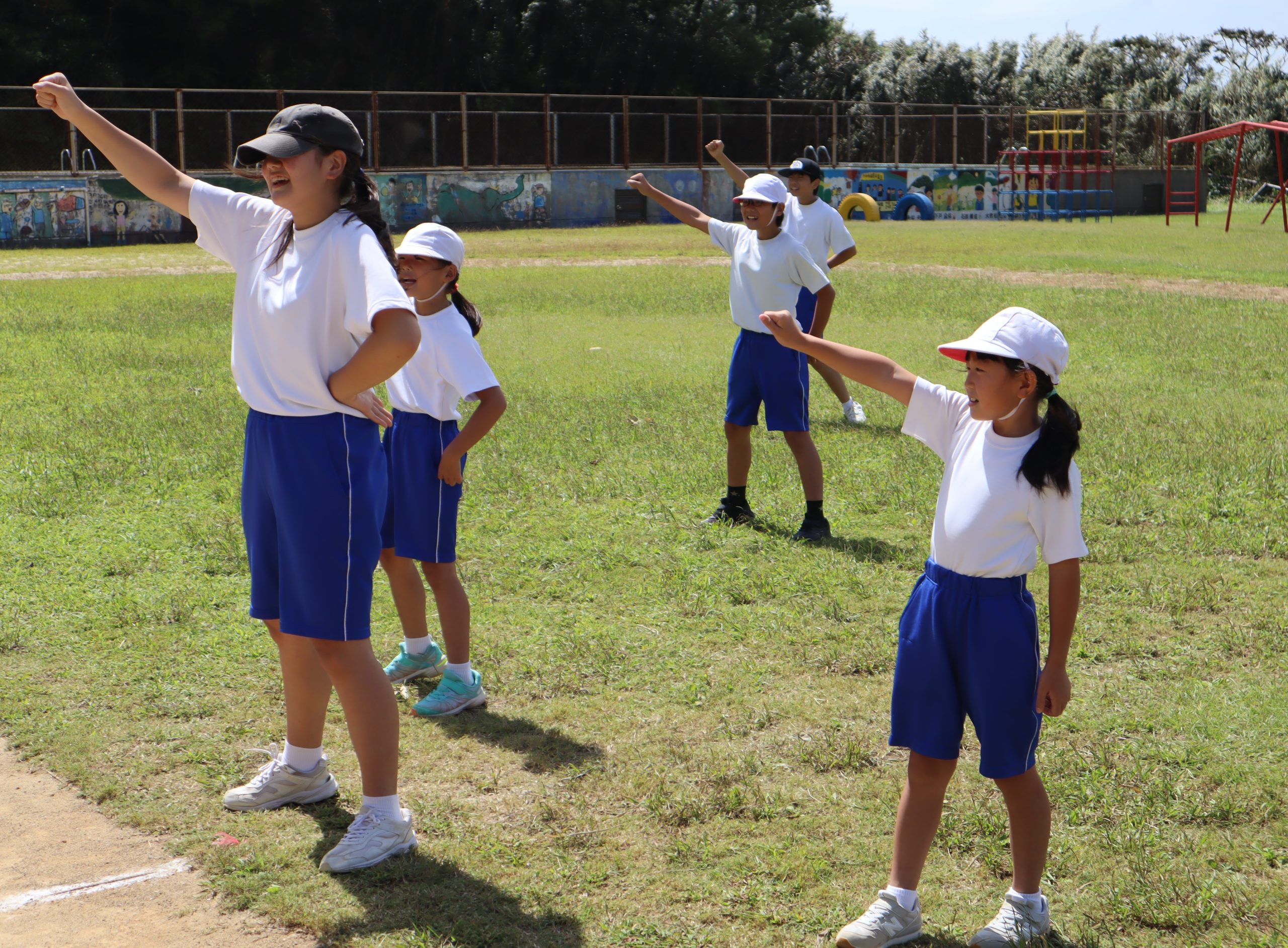今日の運動会の練習は、「開閉会式」「かけっこ」「応援合戦」をしました。開閉会式の練習では、代表の子どもたちや全員の動きを確認しました。かけっこは、実際に走るのは初めてで、ピストルの音に「びくっ」としながらも一生懸命走っていました。応援合戦は、今までそれぞれの団で練習してきたものを披露し合い、残り1週間で、もっと頑張っていこうという気持ちが高まっていたようでした。