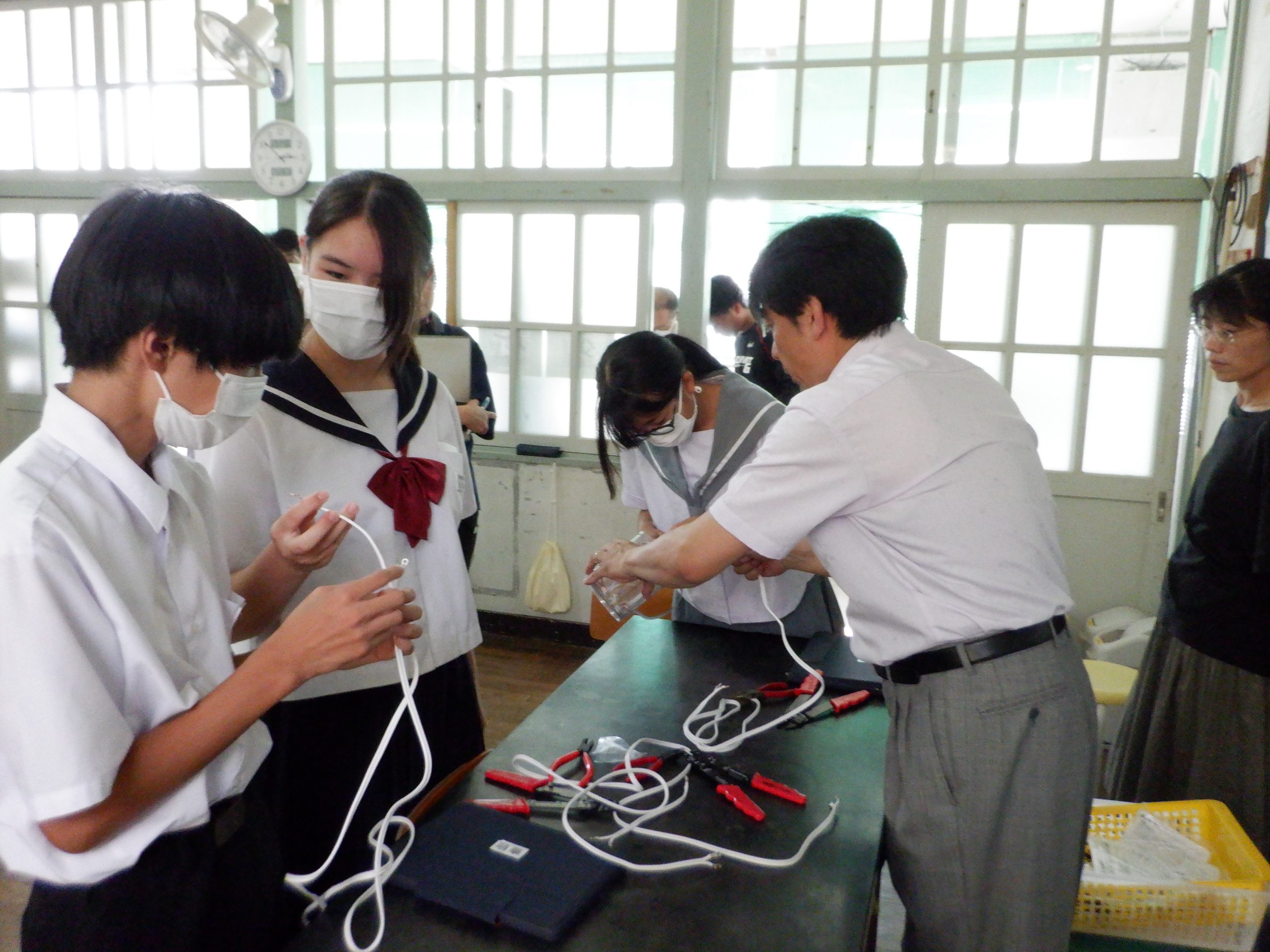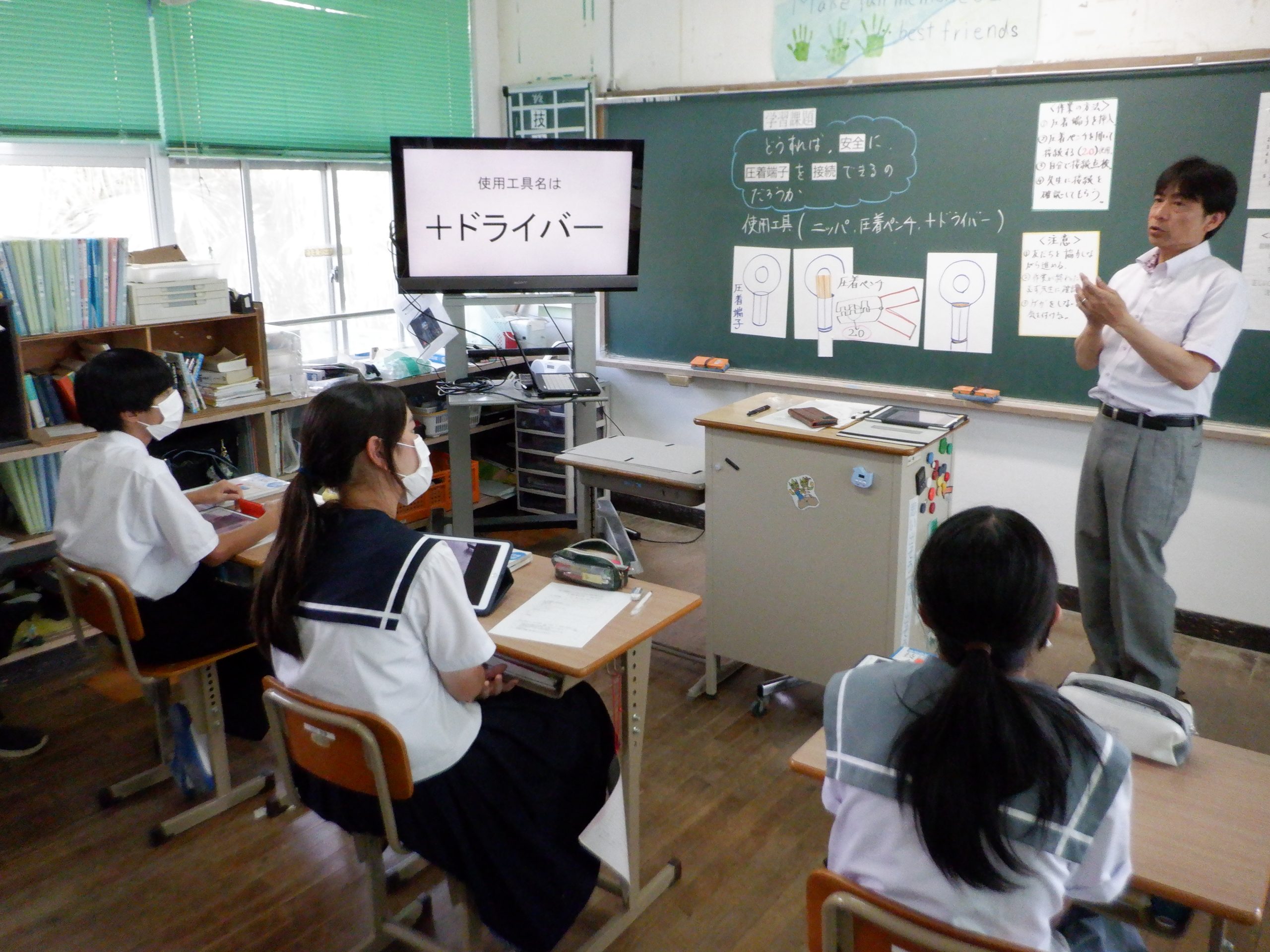 今日は2つの研究授業がありました。3校時に5,6年生の学級活動「目の大切さについて」、5校時に9年生の技術「電気機器の構造と保守点検について」の授業でした。5,6年生は視力低下の原因や目を大切にする生活習慣についてグループでしっかり考えていました。9年生は、延長コードの完成に向けて、全身の力を使って圧着端子を接続しました。