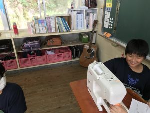 5・6年生は「家庭科」ミシンの使い方を学習中です。