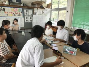 生活委員会では,よい姿勢の在り方について話し合い中です。