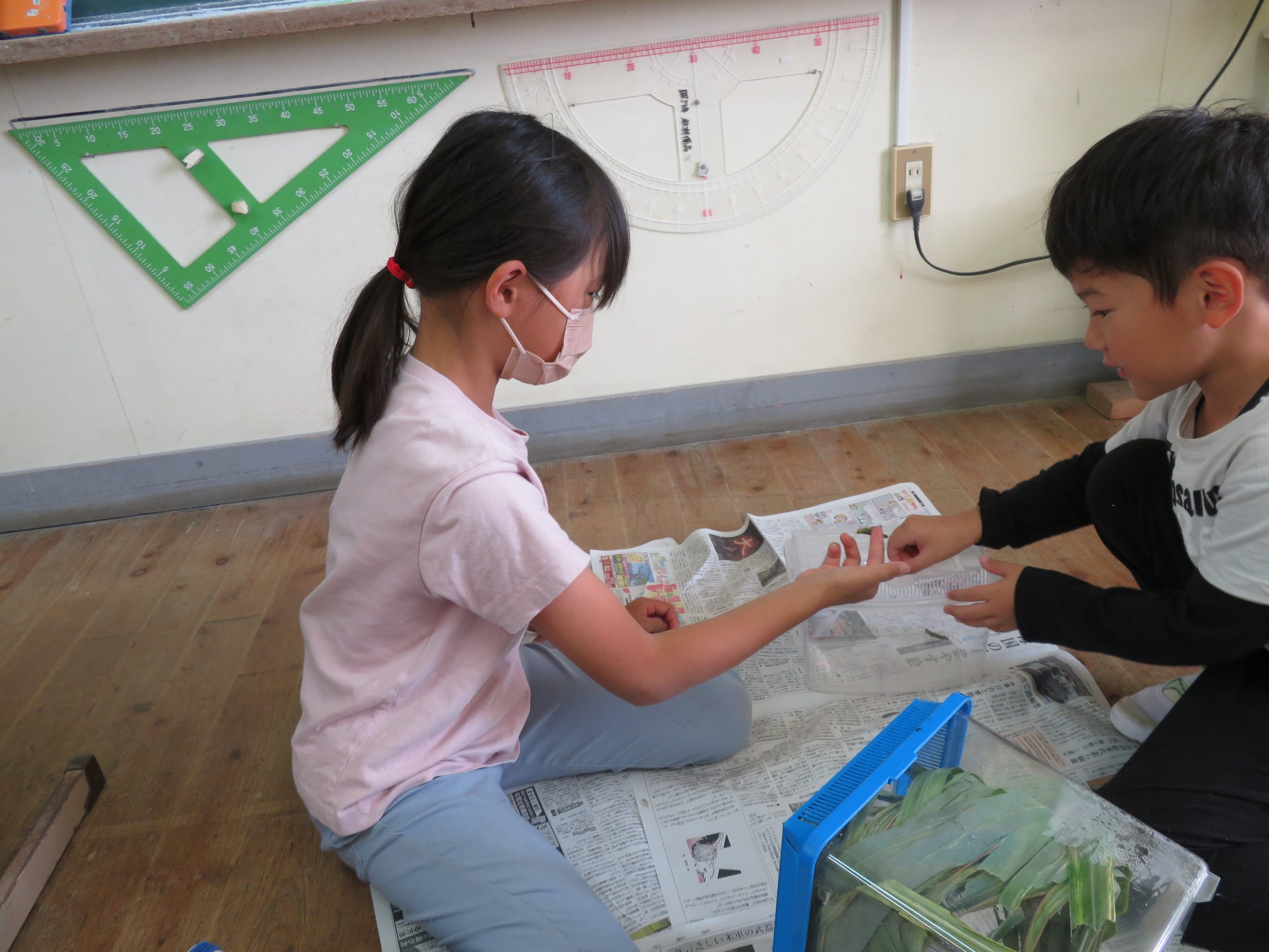 1・2年生は生活科で,とのさまバッタのお世話をしています。