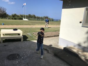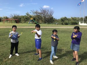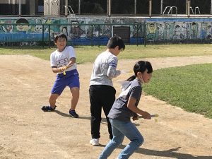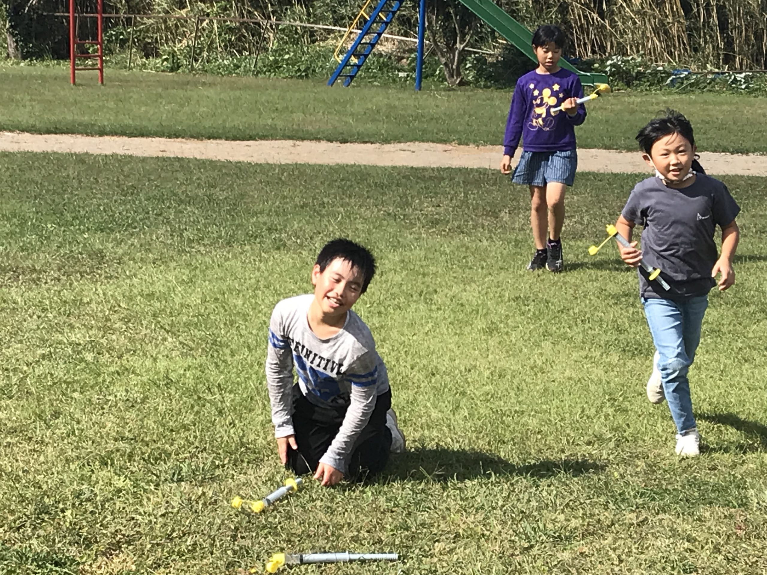 3・4年生は,理科の「とじこめた空気と水」の実験の後,水かけ合戦が始まりました!着替え持参で,おもいっきり水を掛け合っていました。秋空の下,元気な声が響き渡っていました!