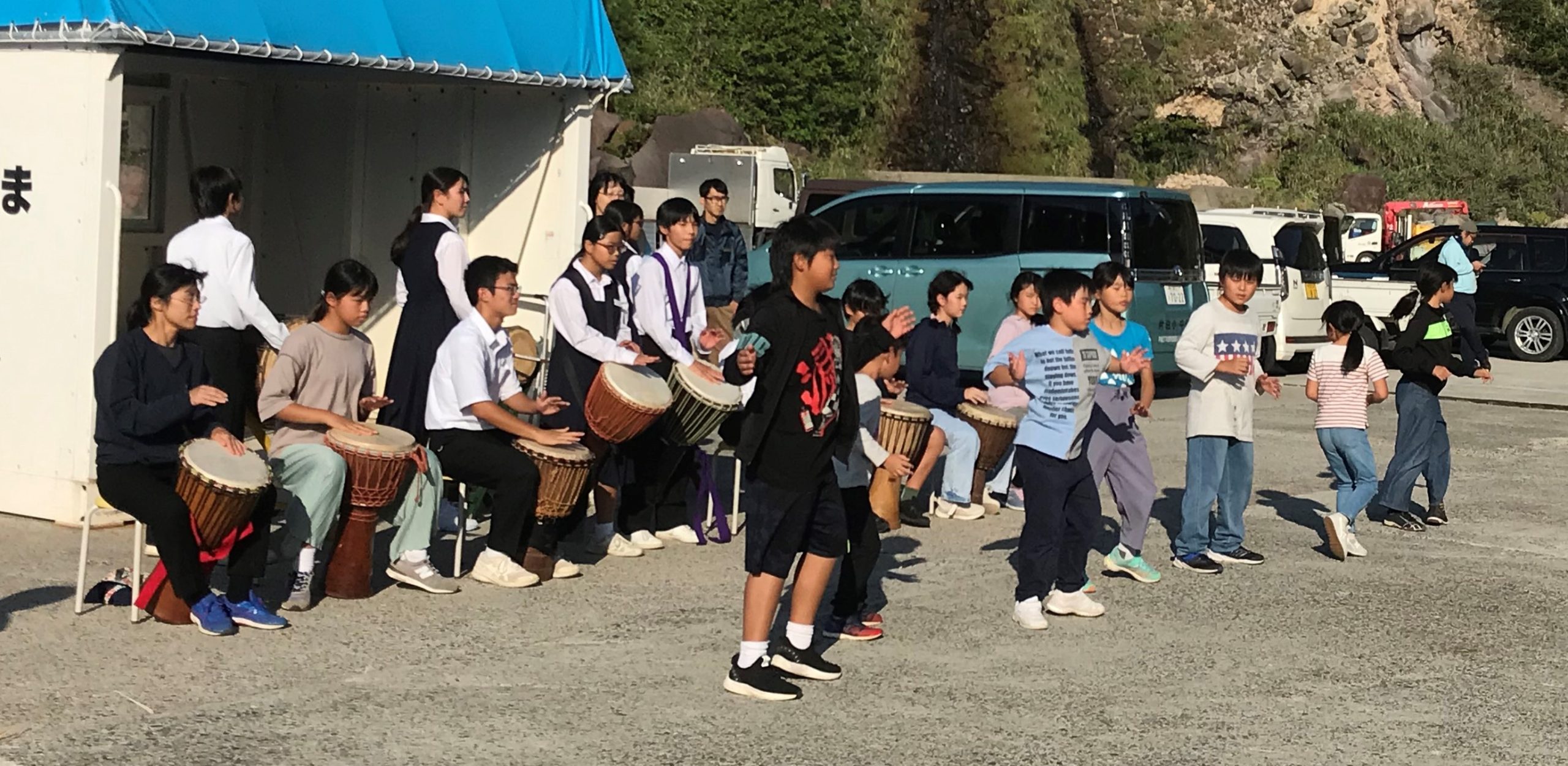 明日の演奏のために「海を渡る音楽会」の方々がここ黒島に到着しました。子どもたちは、ジャンベでお迎えしました。明日の音楽会がとても楽しみです!♪♪♪♪♪