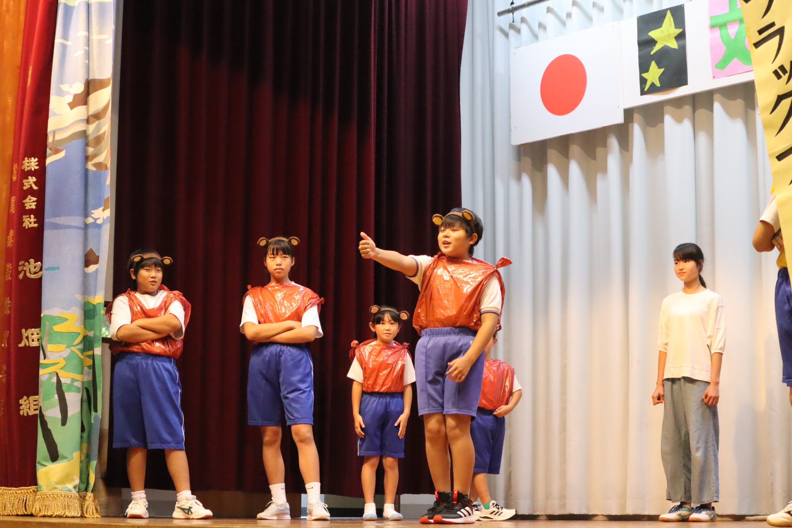 そして,前期課程全員による劇「きつねとたぬきの黒島合戦」です。