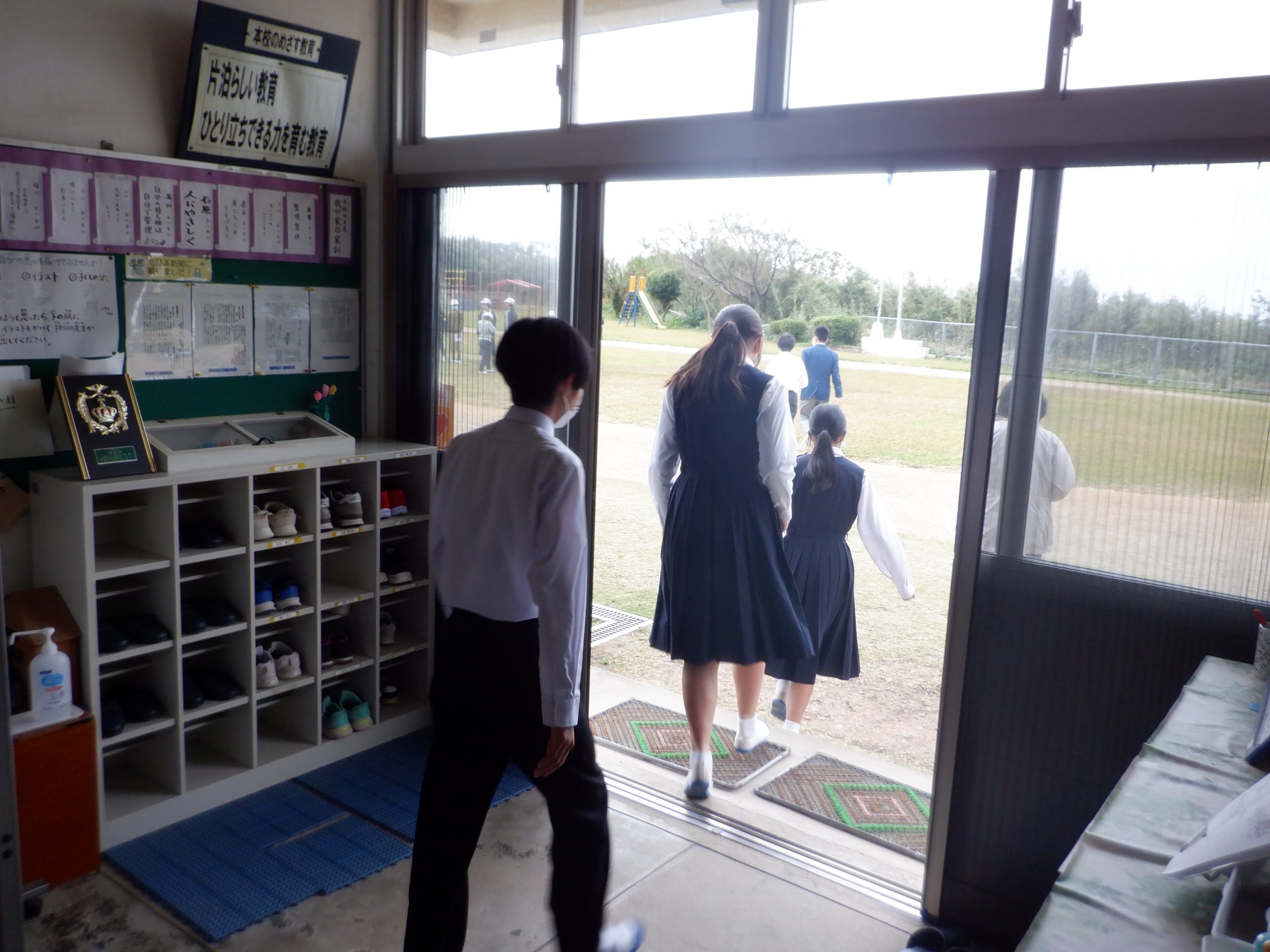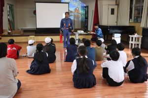 12日(土)に火災避難訓練がありました。給食室から出火を想定した訓練でした。最後に片泊地区の消防団の分団長の講話がありました。いざというときにこの訓練のことを生かしてほしいと思います。