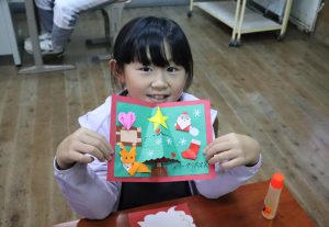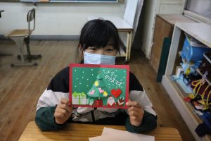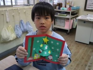3・4年生の図工では、クリスマスカードを楽しそうに作ってました。