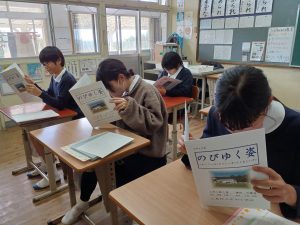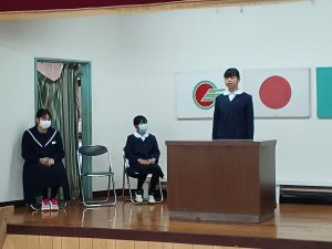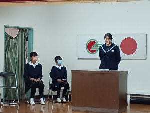 今日で2学期も終わり、明日から冬休みです。終業式では、代表の児童生徒が2学期の思い出や冬休みに取り組みたいことなどを発表したり、校歌を元気よく歌ったりしました。学級活動では通知票をもらい、それぞれが2学期の学習や行動の記録を確認していました。冬休みは家族とゆっくり過ごし、全員が3学期にまた元気に登校してほしいと思います。