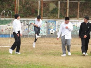 寒い日が続いていますが,最近,昼休みにサッカーをする姿がよく見られます。前期課程も後期課程も一緒になってボールを追いかけています(*^▽^*)