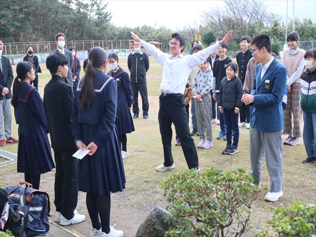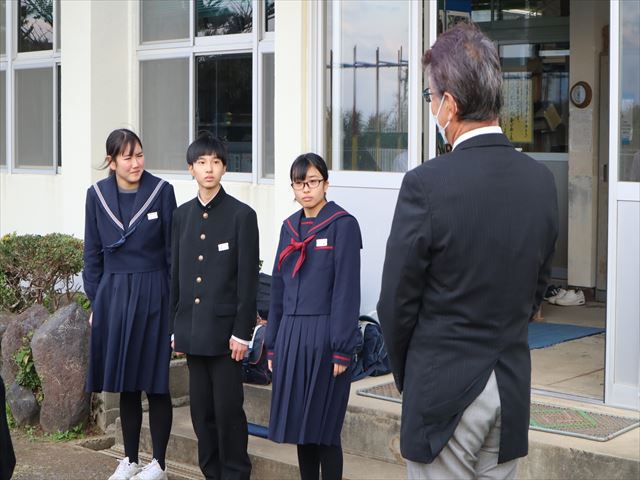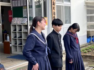 放課後,9年生の「受験激励会」を行いました。校長先生から「はなむけの言葉」を頂き,受験生の3名から「決意の言葉」を発表してもらいました。 会の最後には,後輩から「お守り色紙」を贈呈され,さらに,気合のこもった「エール」を全身に浴び,全校児童生徒に見守られながら出発していきました。 自分の持てる力をすべて出し切ってきてくださいね!