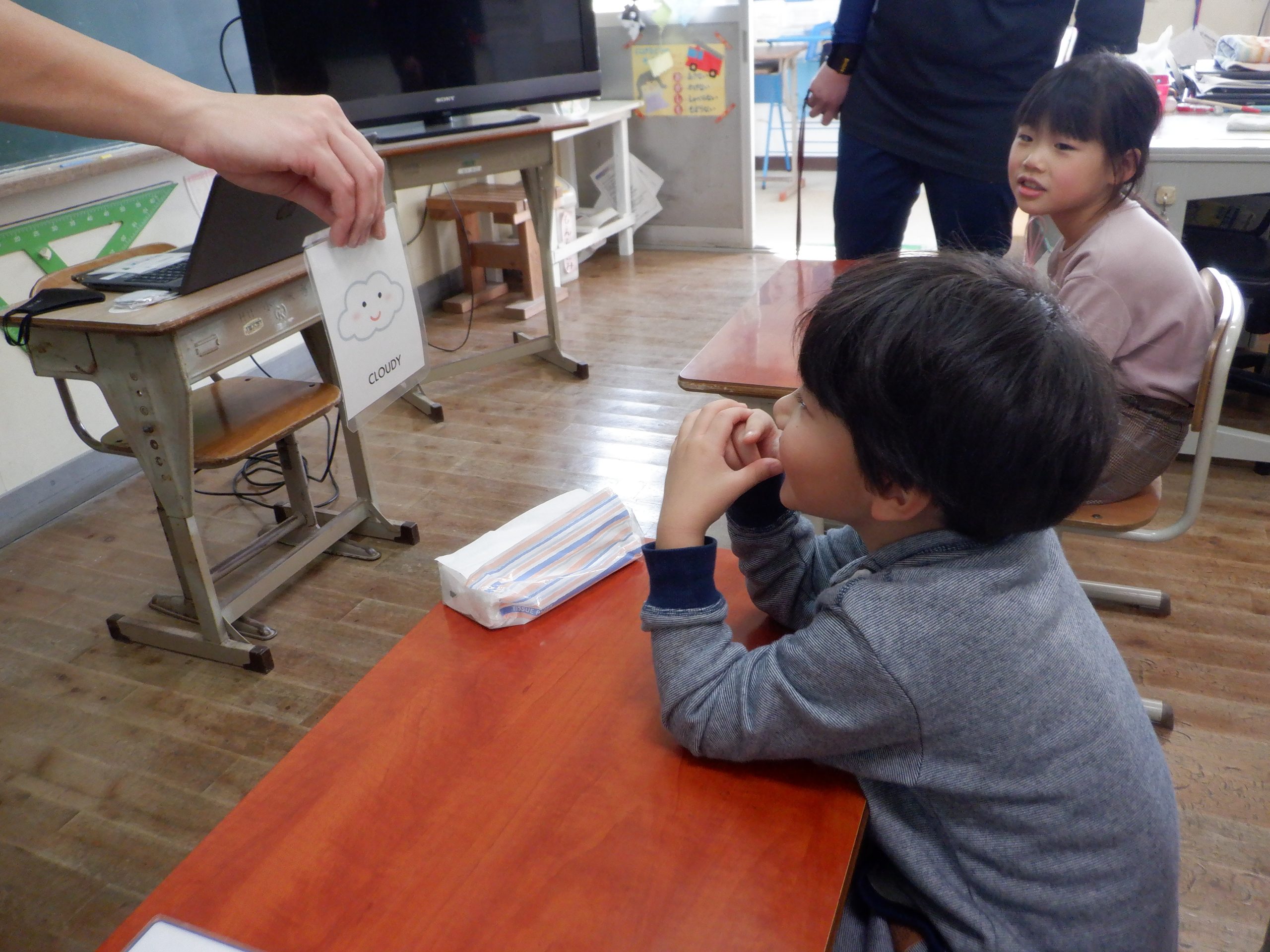 Sunny, cloudy, rainy, windy…シールをもらうために全部覚えなければいけません!