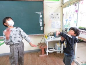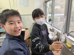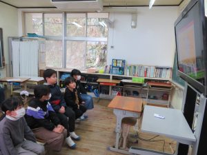 学校に雪は積もりませんでしたが、黒島の山頂や道路端には,うっすら雪がみられました。 今日は県立図書館の先生が片泊学園の子ども達に遠隔授業で 読書指導をしてくださいました。 4年生の理科「水のすがたと温度」での実験の様子です。 1・2年生 生活科での紙の「竹トンボ」づくり! 校長先生と給食!「8年生」