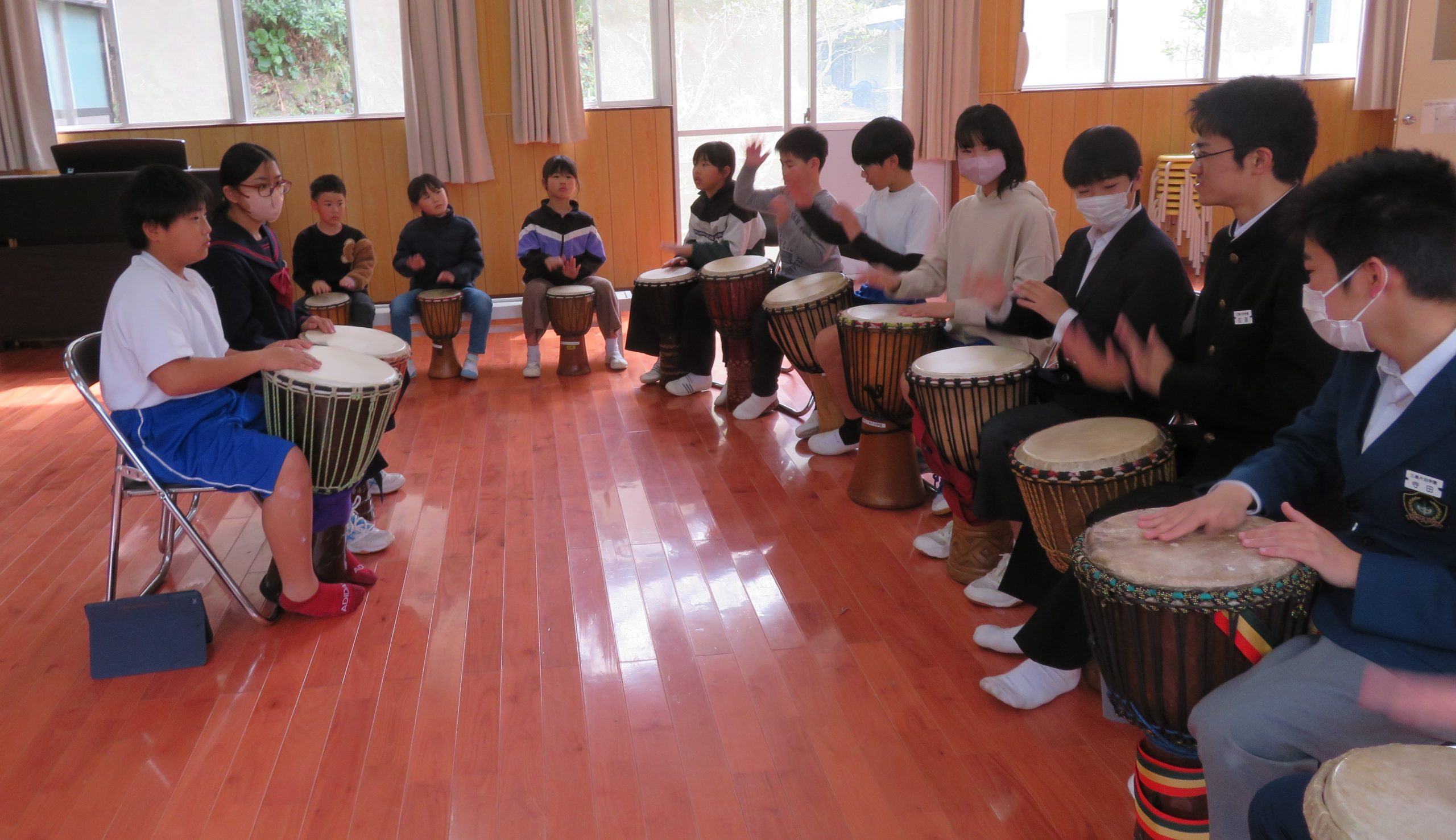 続いて、毎週水曜日の昼休みのジャンベ練習です!ジャンベの素敵な音が鳴り響きます。