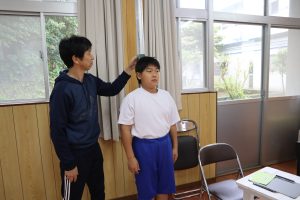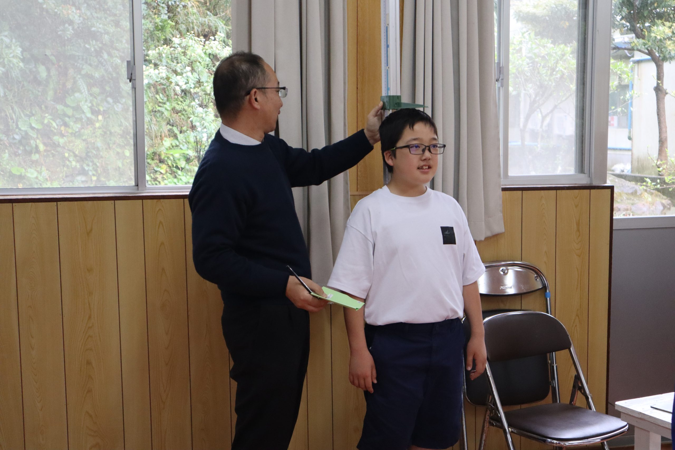 今日の1・2校時は、身体計測が行われました。「やったぁ、2cm伸びた!」「視力どちらもAだったよ」