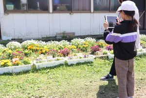 続いては、3年生の理科です。内容は、「春のしぜんにとび出そう」 ミツバチの写真は上手に撮れたかな?