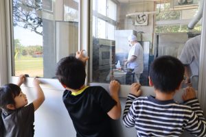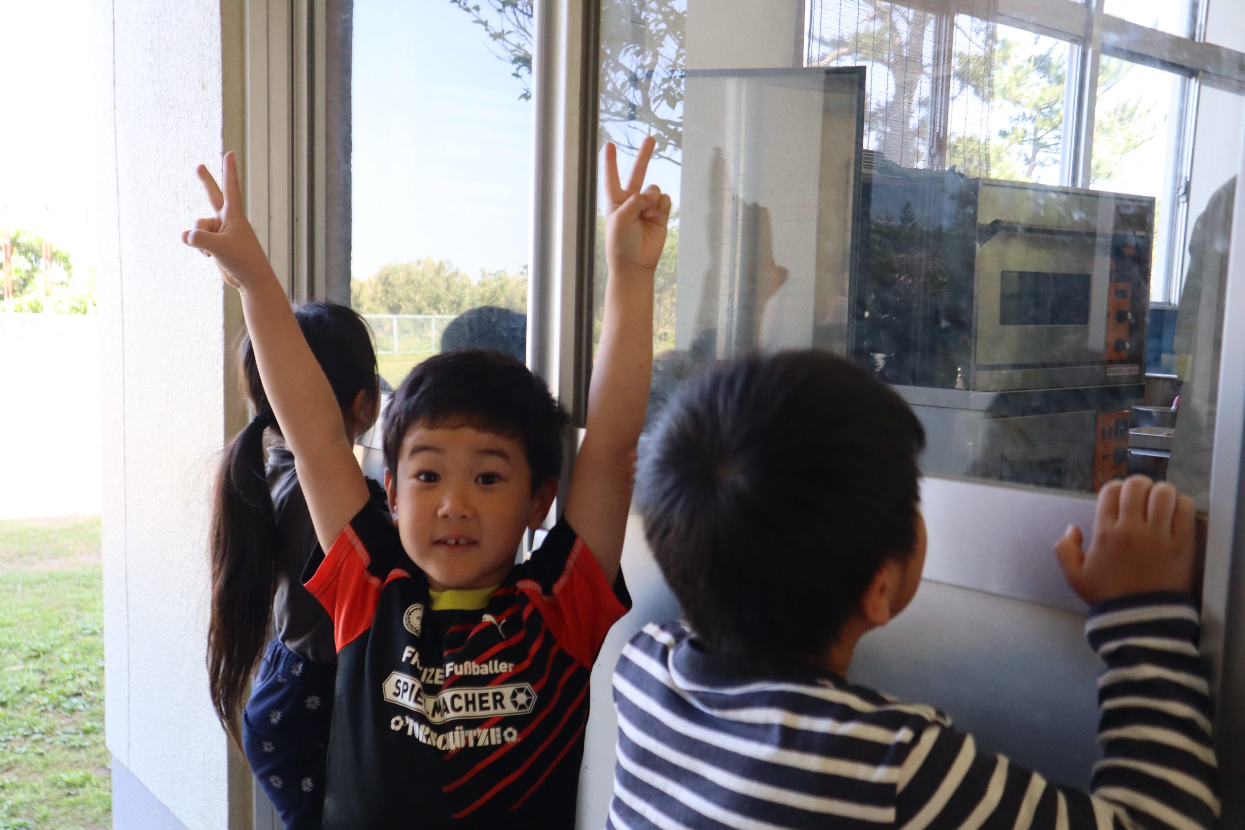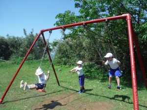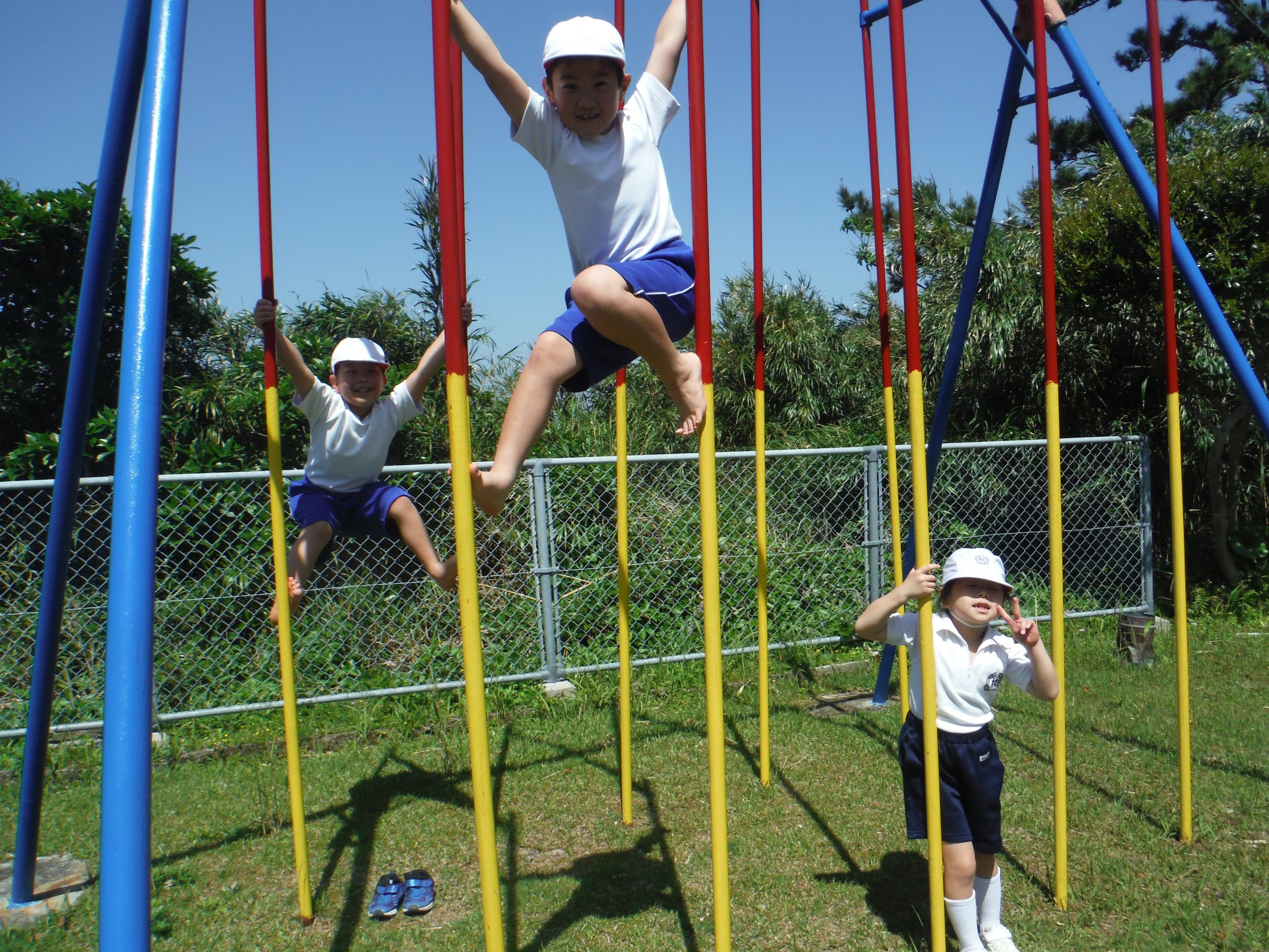 今日も、1・2年生は元気いっぱい頑張っています😊 3時間目は、生活科の授業です。学校探検で給食室をのぞいていました。 とてもおいしそうなにおいがします。おなかがすいてきました。 4時間目は、体育です。遊具遊びです。 ぶらんこが大好きな3人です。 今日も元気いっぱいな1・2年生でした。