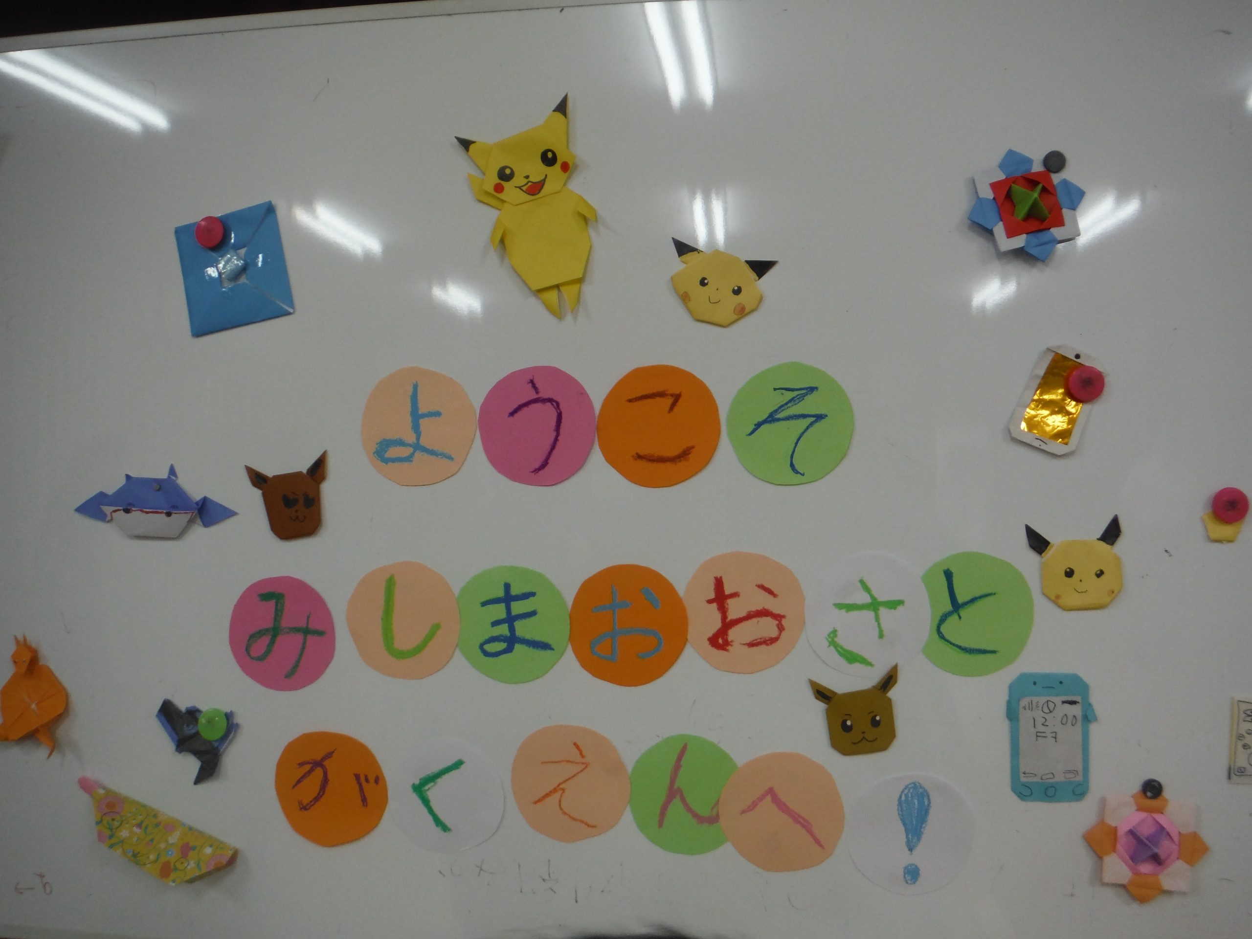 今日は、1・2年生が楽しみにしていた三島大里学園との交流学習が行われました。 集会室には、素敵なウエルカムボードがありました。三島大里学園のみなさんありがとうございます。 久しぶりに会ったお友達もいれば、初めて会うお友達もいて、自己紹介の時は少し緊張して いた子どもたちでしたが、一緒に活動するうちにあっという間に打ち解けた様子でした。 短い時間でしたが、とても楽しく活動することができました。 三島大里学園のみなさんありがとうございました。次に会えるのは、水泳大会かな?楽しみですね。