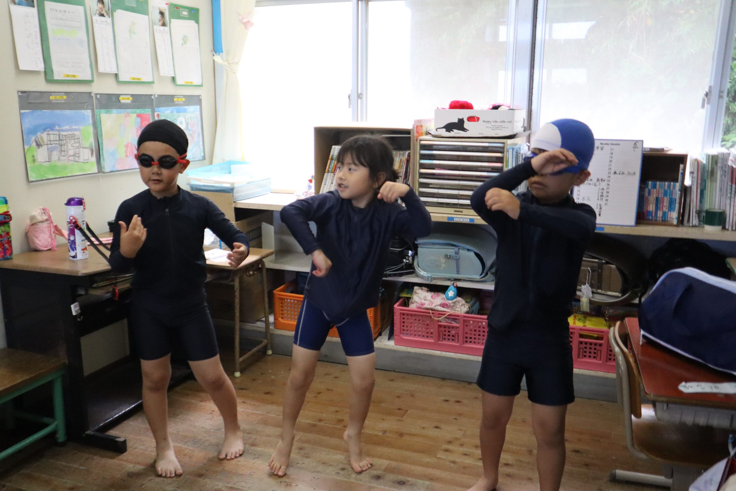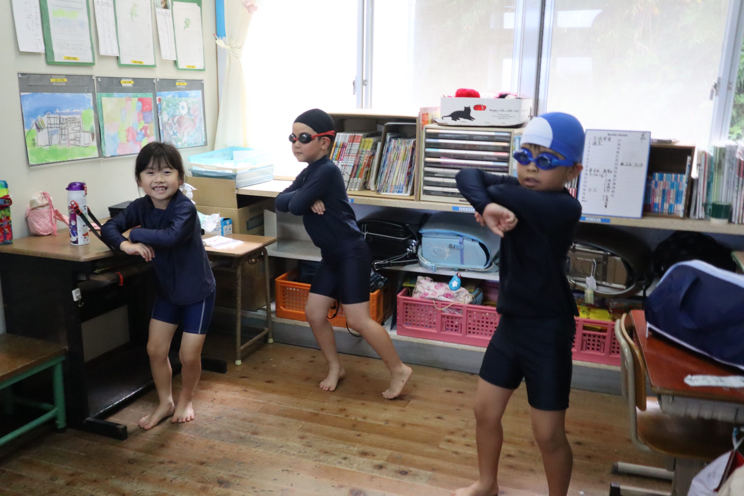今年もやります!!○○ダンス!! ヒップホップ?ジャズダンス?それとも??ブレイクダンス?? いいえ、どれも違います。片泊の夏といえば、そう!「ジャブジャブダンス」です😊 みんなが楽しみにしている、1,2年生によるジャブジャブダンス、今年も大里学園と合同で 踊ります。今日は、教室で練習しているのをこっそりのぞいてみました。 先生も子どもたちもノリノリです。教室で練習した後は、プールで大里学園の1,2年生と合同で 練習していました。 水泳大会まで、あと2週間。本番をお楽しみに!!