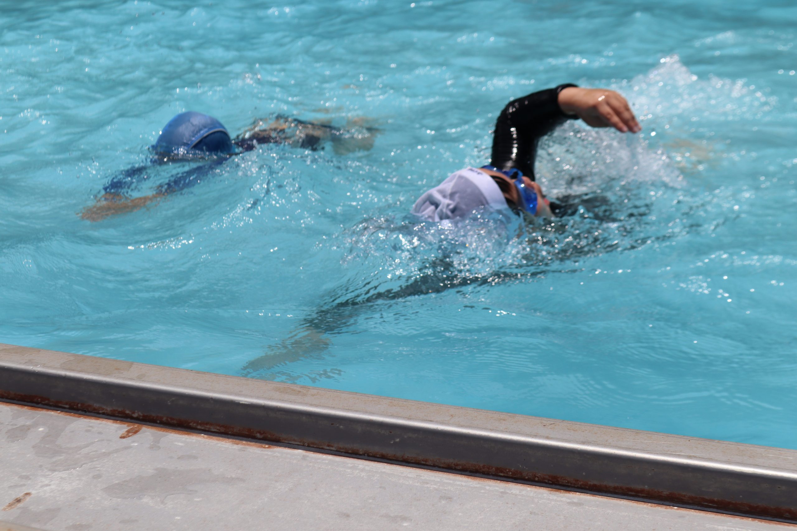 今日は、3~6年生の水泳の授業が久しぶりにありました。しかもとても良い天気です。 これまで水泳の授業がある日は、大雨や雷・・・と中止になっていたので、子どもたちも今日の天気と同様 にににこ嬉しそうです。 水に慣れた後は、バタ足、クロール、平泳ぎと1人1人に合わせた練習です。 7月1日(土)は、大里学園との合同水泳大会です。頑張ります!