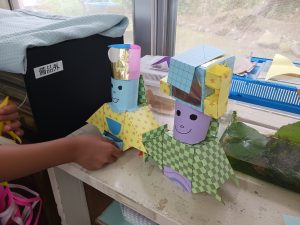 前期課程で七夕かざりをしました。折り紙を使ってかざりを作り、バランスを考えながらきれいにかざることができました。一人一人願い事も丁寧に書きました。願いがかなうといいですね。