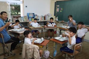 片泊学園の給食は、4名の方が交代で調理してくださっています。とてもおいしくて子どもたちも