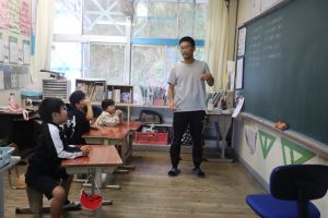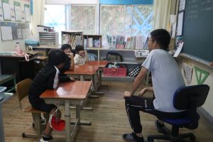 1・2年生は、後期課程の英語担当の先生から英語を教えてもらいました。難しい単語も出てきましたが、数字を使ったゲームはとても盛り上がり、外国語を楽しく学ぶことができました。