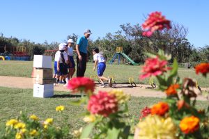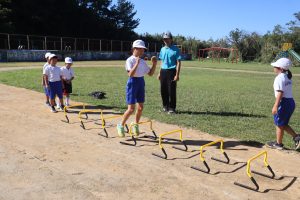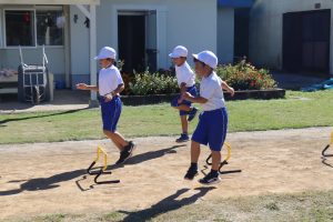 2時間目、前期課程の1年生から4年生が合同で体育をしました。体を動かしながら楽しく体操をしたり、障害物を飛び越える練習をしたりしました。天気もよく、花壇にはきれいな花がたくさん咲いていました。3時間目の授業も、笑顔いっぱいで受けていました。