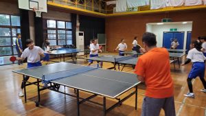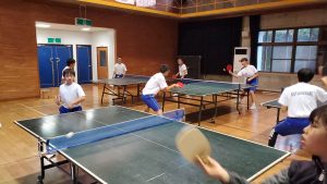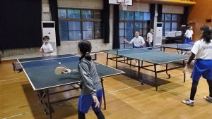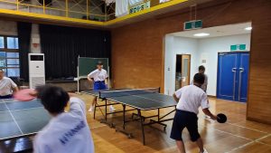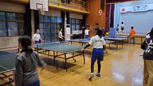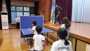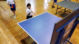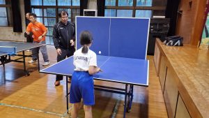 放課後に、卓球教室がありました。宮田穣さんに教えてもらいながら、楽しく卓球をすることができました。前期生は、初めての子も多く、壁打ちをしたり、ラケットでボールを落とさないように打ち続ける練習をしたりしながら、少しずつ上手になっていました。最後は、打ち合いをできるようになった子もいて、卓球の楽しさを知ったようでした。
