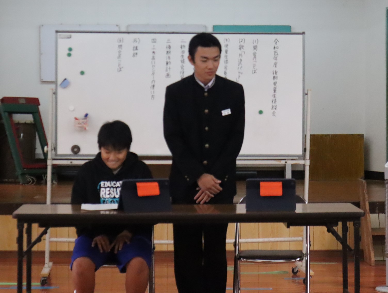 天気は曇ってましたが、今日の片泊学園はみんな元気です。 今日は、後期児童生徒総会がありました。令和5年度の活動報告、反省及び次年度へ引き継ぐ活動内容等の説明がありました。旧会長、副会長、一年間ご苦労様でした! 今後は、令和6年度の会長、副会長へ引き継がれます。 新しいメンバーで学校がより良くなるように頑張ってください😊 今日の給食は、味噌ラーメンでした!とても美味しかったです!😋