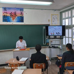 前期課程の5・6年生と後期課程生は、4時間目に人権教室がありました。はじめに後期課程生が一人ずつ、世の中の人権侵害について発表をしました。身近なことだけでなく、いろいろな人権侵害があることが分かりました。その後、「めぐみ」というDVDを視聴し、拉致問題について理解を深めました。今日の人権教室を通して、改めて人権の大切さを感じ、今後の生き方に反映させてほしいと思います。