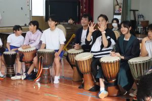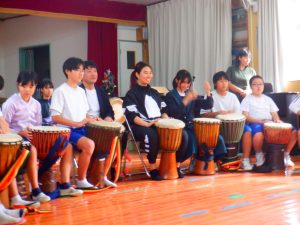 そして、5時間目は音楽の授業「ジャンベ」です。ヤンカディマクルという曲をみんなで練習して、最後に一緒に演奏しました。