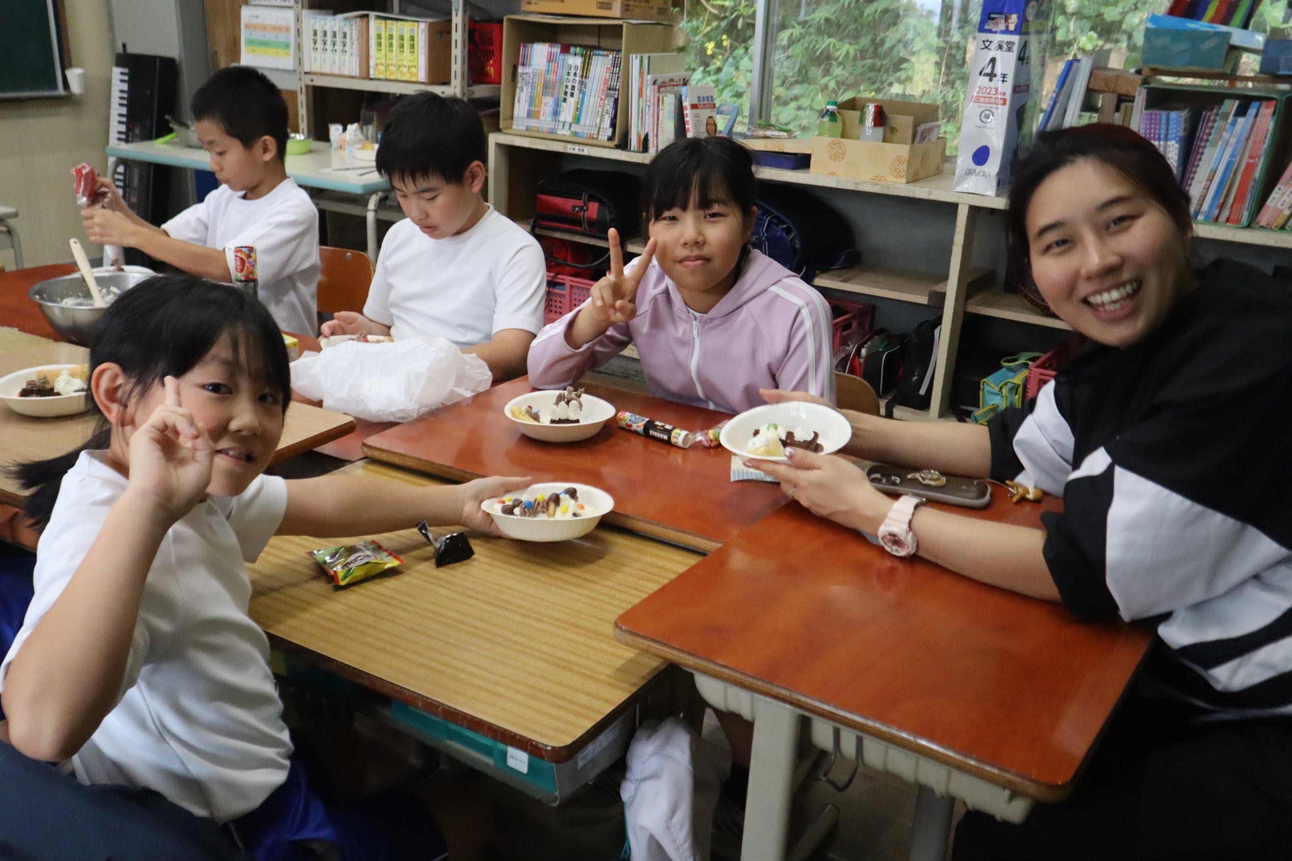 6時間目は、前期課程のクラブ活動に一緒に参加していただきました。ケーキを一緒に作って食べました。おいしかったです。