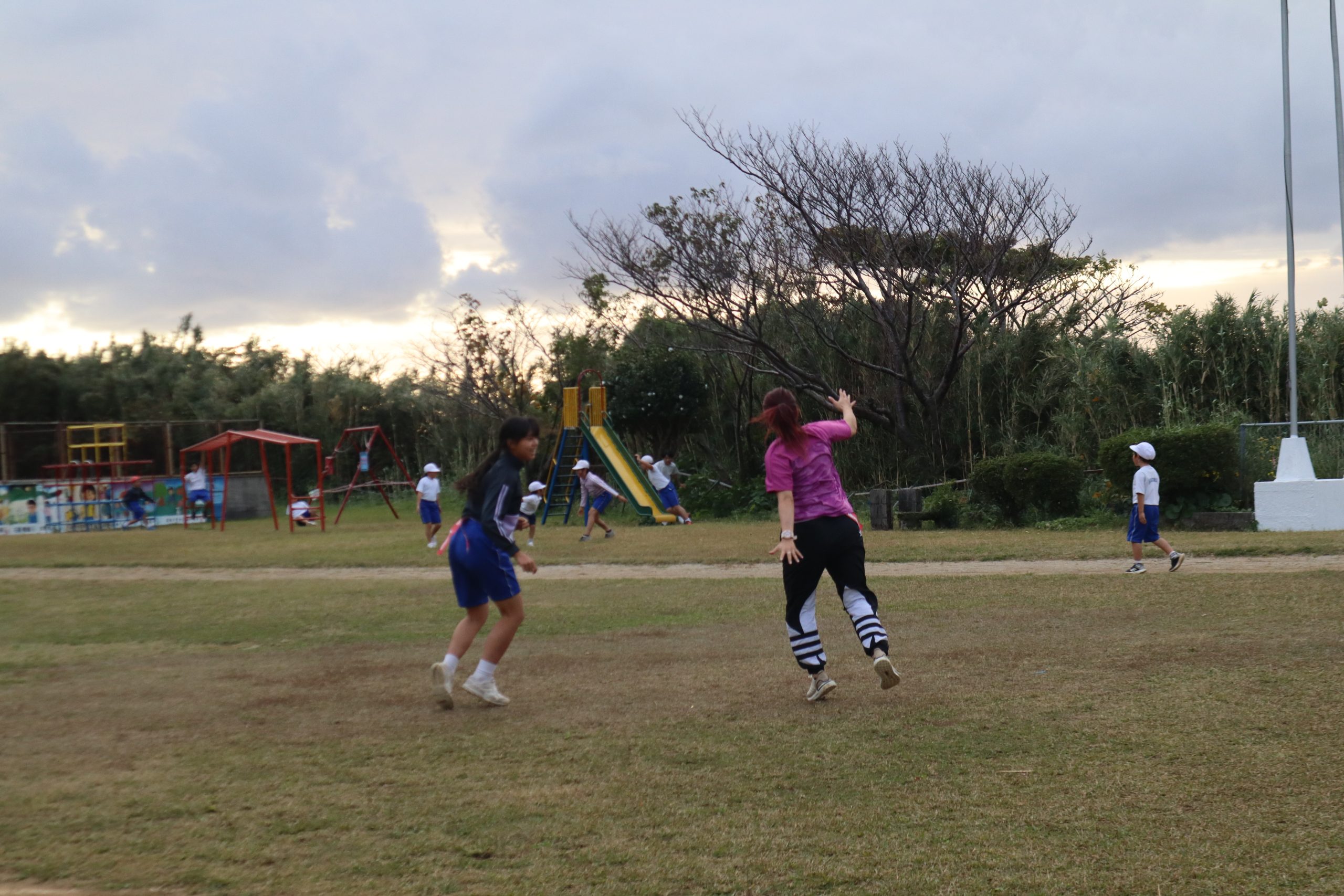 放課後も運動教室で、みんなで「しっぽとり」をして遊びました。一日中運動している木村選手、子どもたちみんなまだまだ元気です。