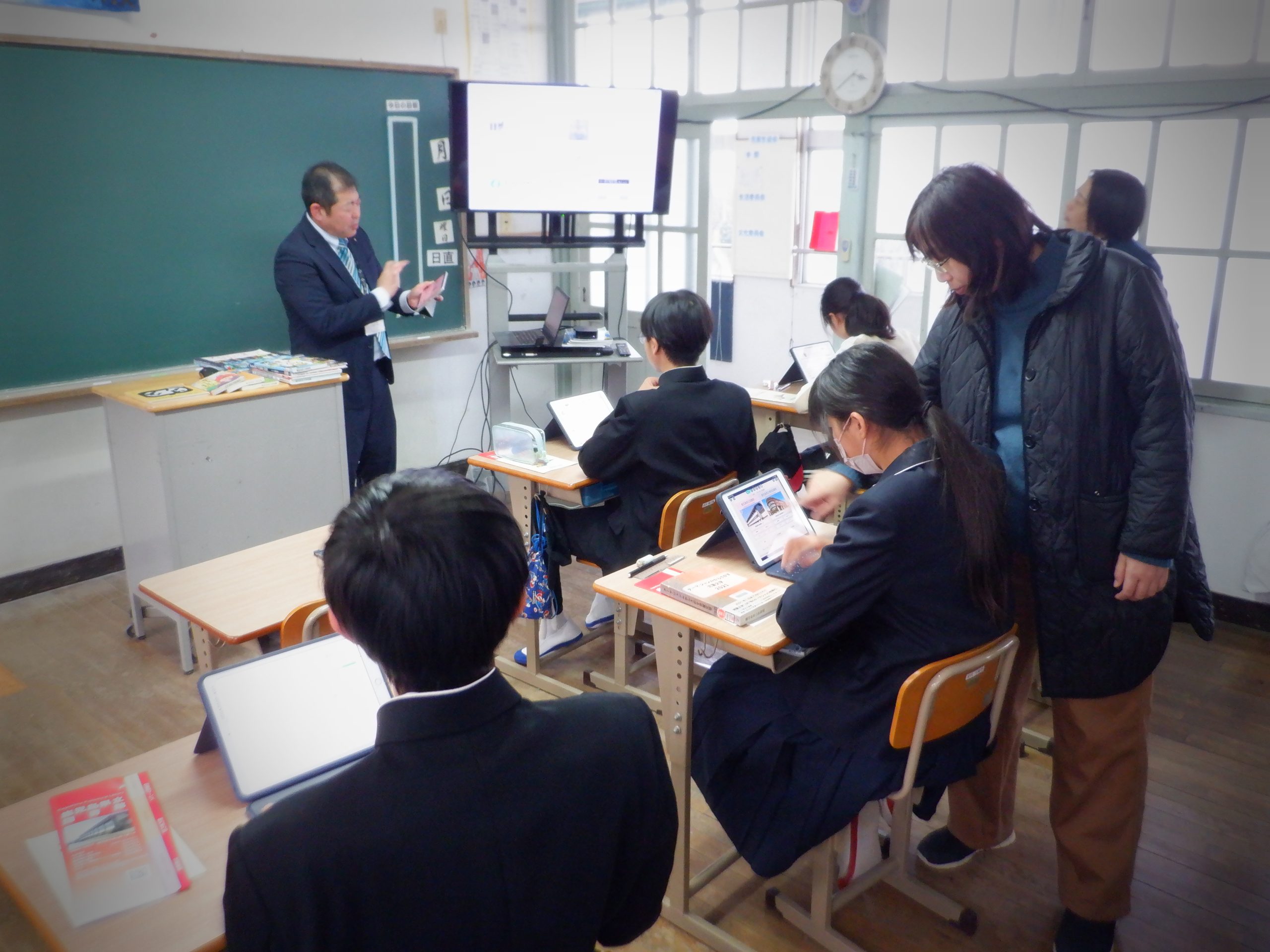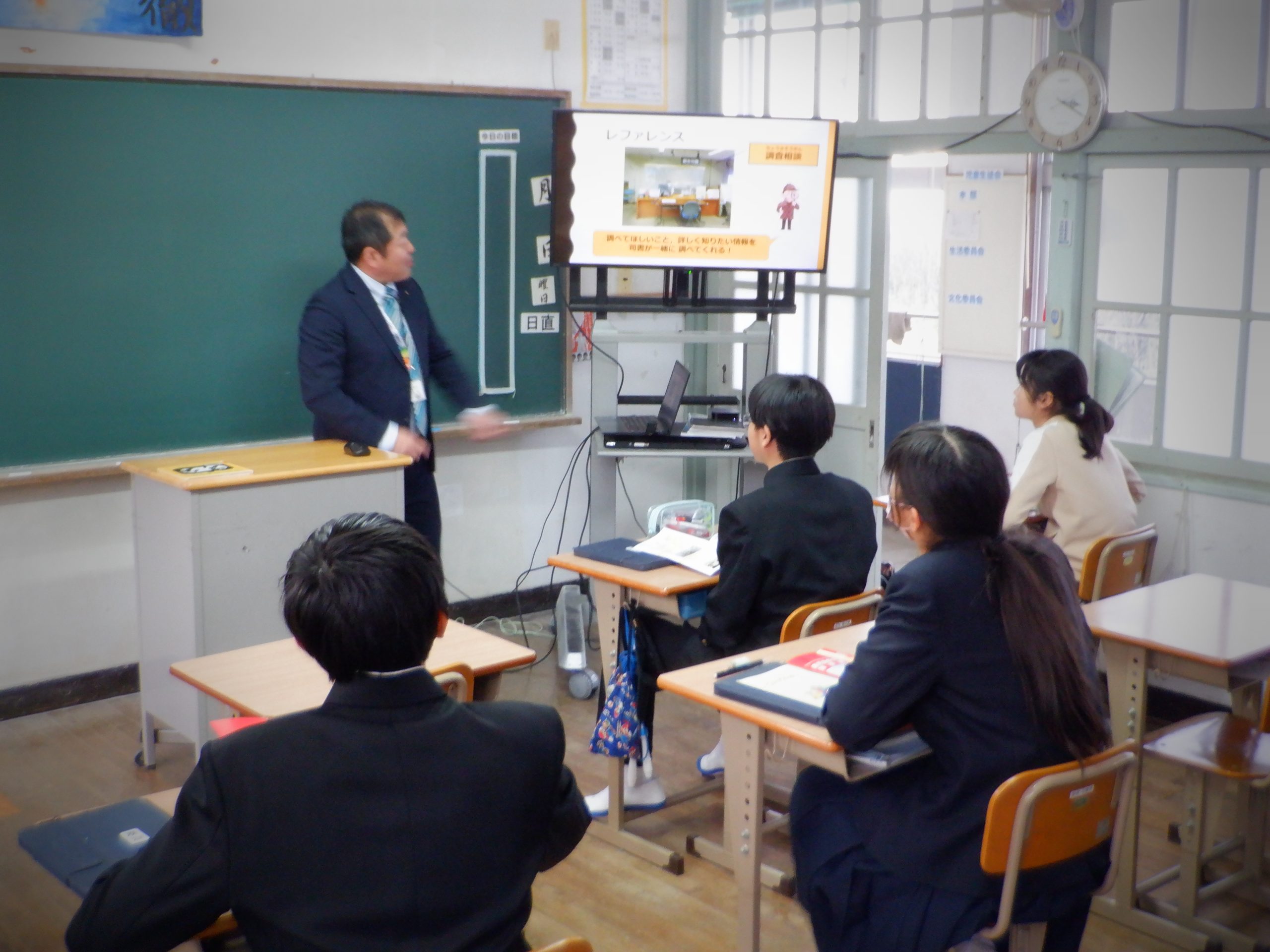 今日は、鹿児島県立図書館の瀬戸先生に読書指導を行って頂きました。読書の効果などについて改めて教えて頂いた後に、読みたい本や借りたい本の検索方法について教えて頂きました。生徒はそれぞれ、興味がある事柄を検索し、本を探していました。今日の授業を機に、今後更に読書に親しんでほしいです。