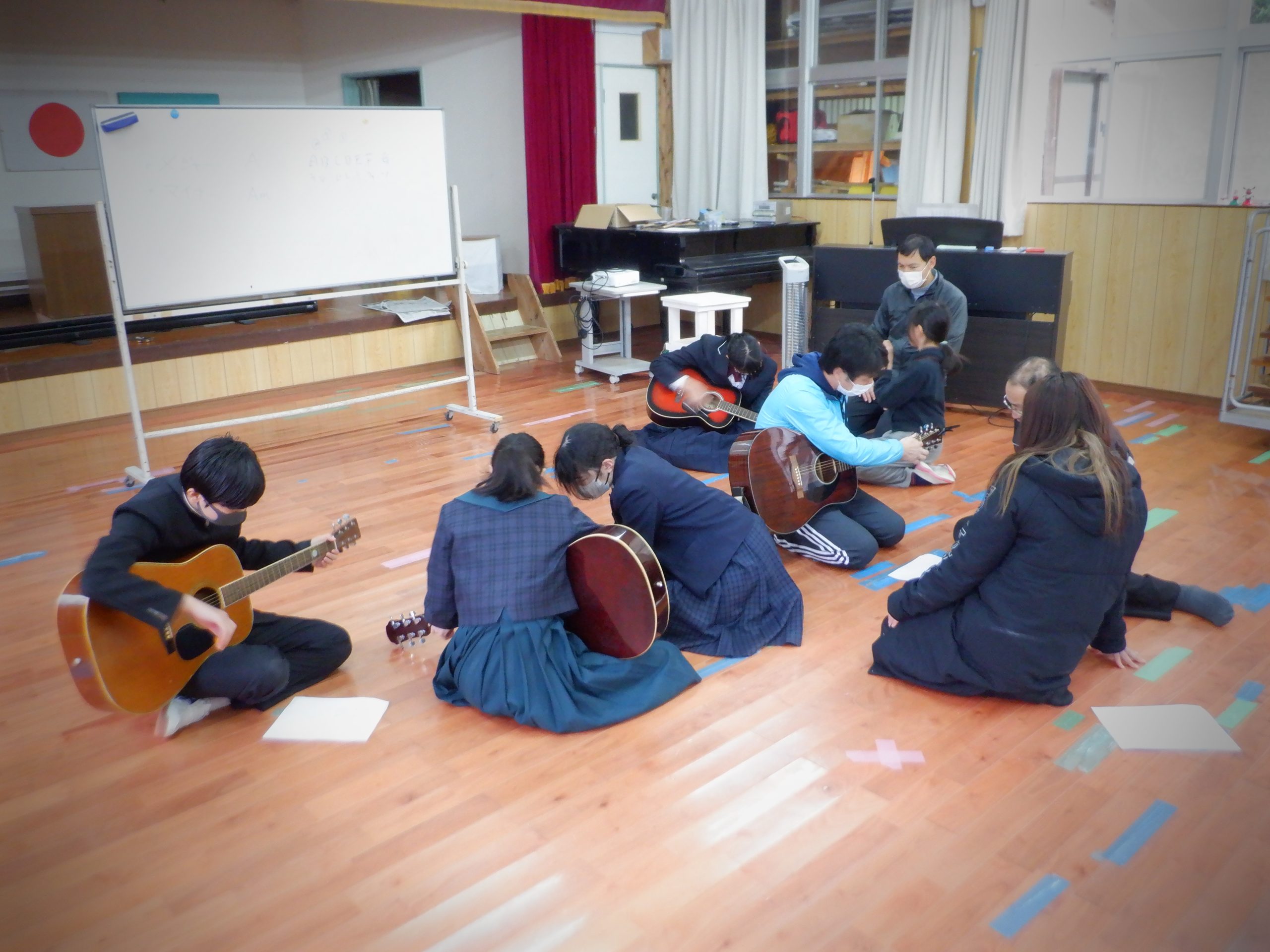 後期課程生7.8年生は、ジオ科の学習でインタビューに、9年生は、魚の干物作りにチャレンジするために魚釣りに出かけました。どんな干物ができあがるのか楽しみです。 放課後プランは、ギター教室でした。GやCなど、いろいろなコードを学びました。難しいけれど楽しく弾くことができました。早く曲を弾けるようになれたらいいですね。