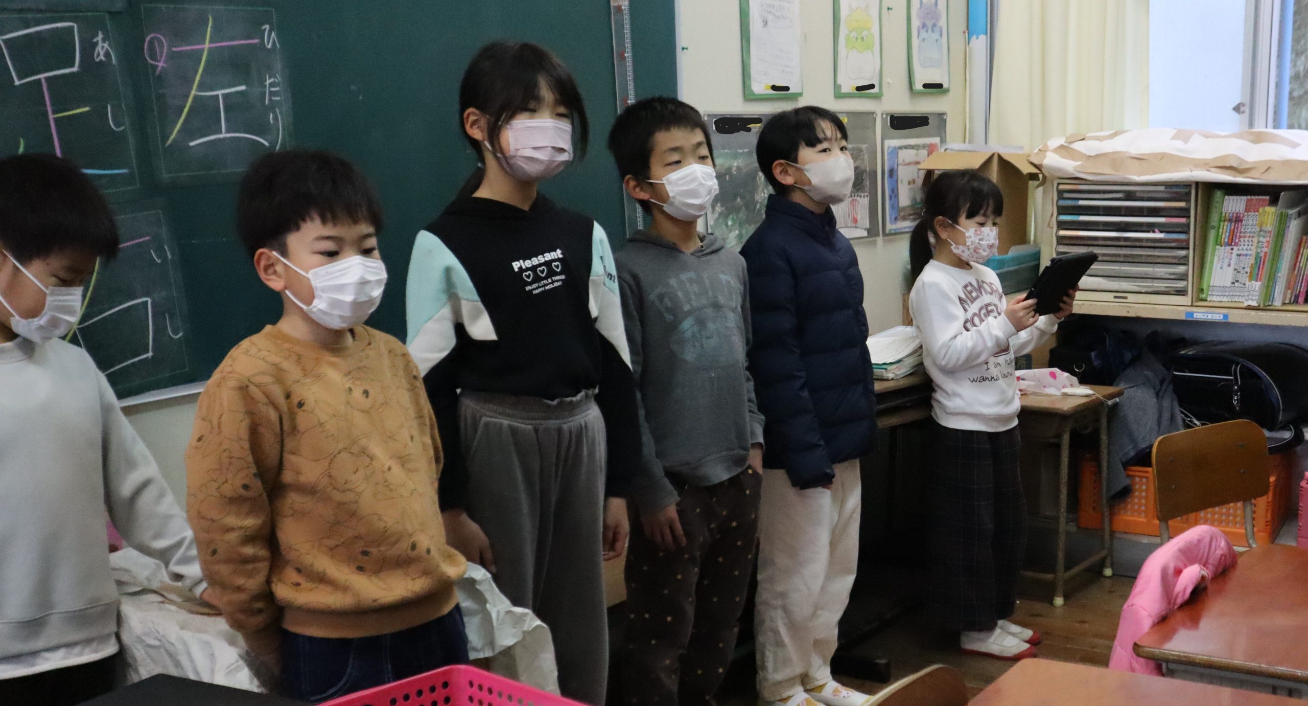 本日の片泊学園の天気は曇っていますが、子どもたちは元気いっぱいです。