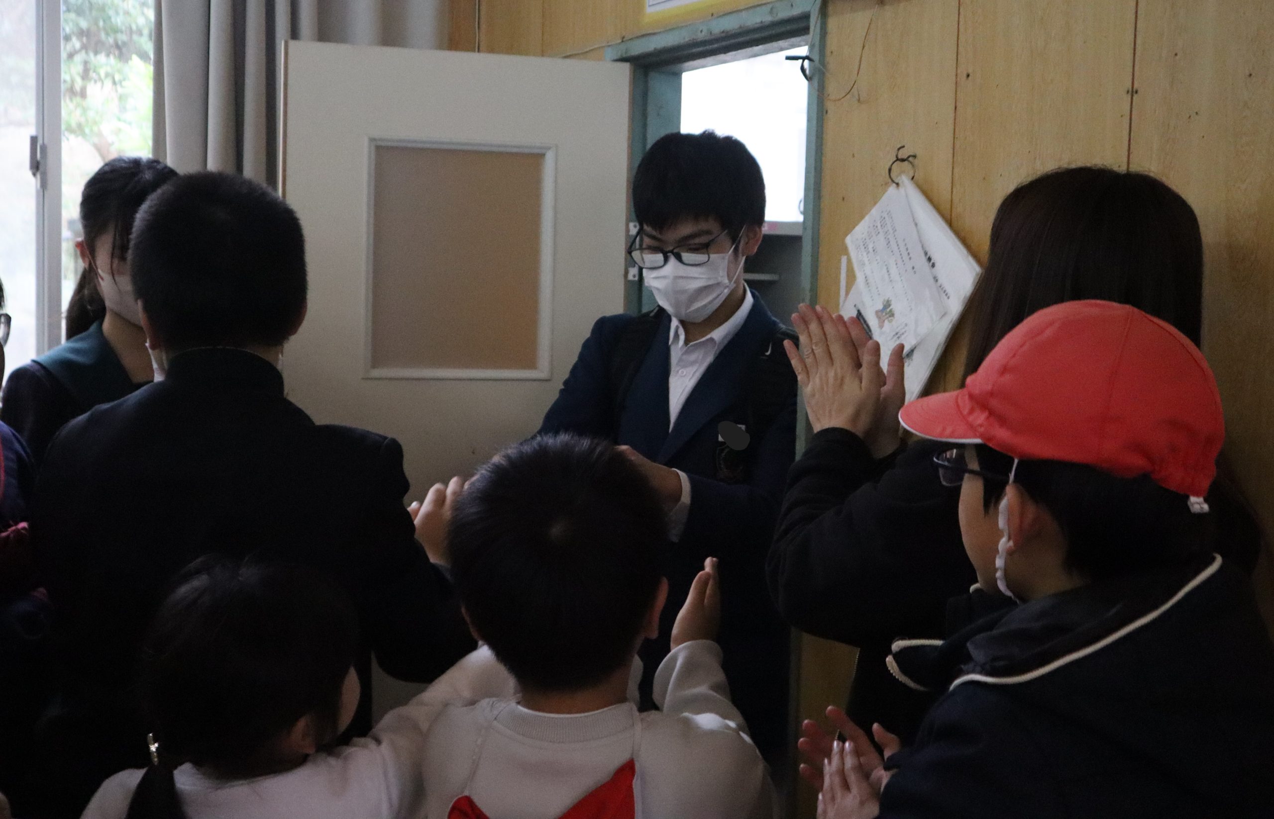 続いては、1・2年生の生活の時間です。「紙トンボ」と「福笑い」を作っています。上手に作れたかな?