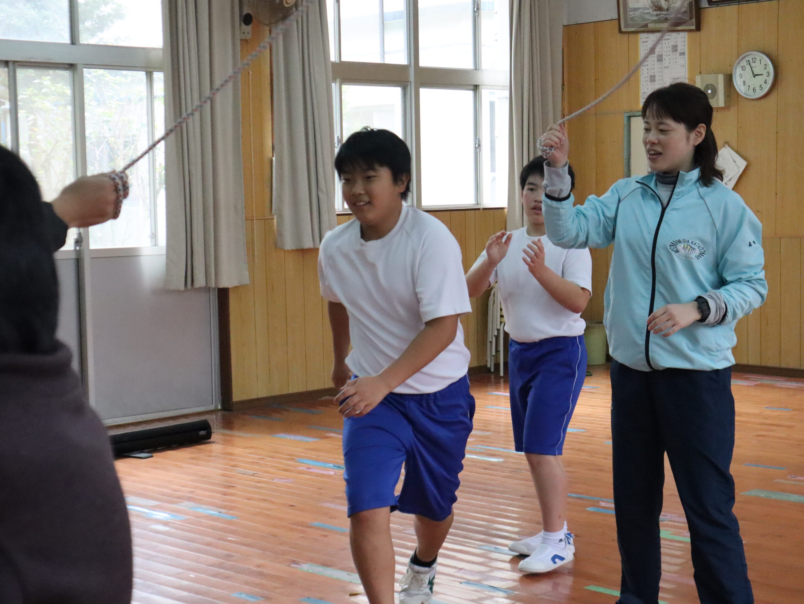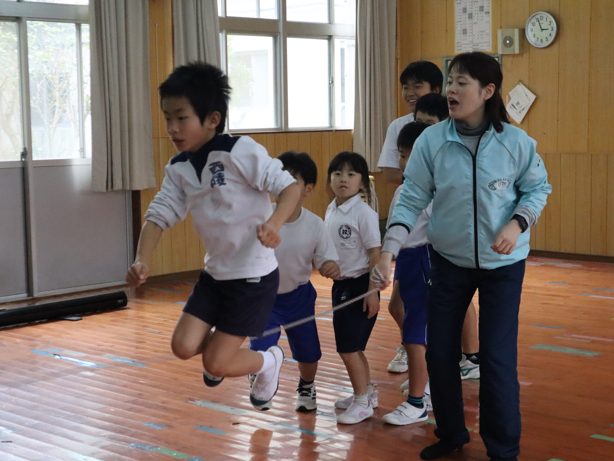 今日の5時間目は、前期課程合同体育でした。29日(木)の授業参観で縄跳び大会が行われるので 練習をしました。はじめに短縄跳びをしました。あや跳び、交差跳び、二重跳び・・・と様々な 飛び方を練習しました。もう、みんなヘトヘトです。 最後に、長縄跳びをして終わりました。最後までみんな一生懸命がんばりました。 本番も頑張ってくださいね。