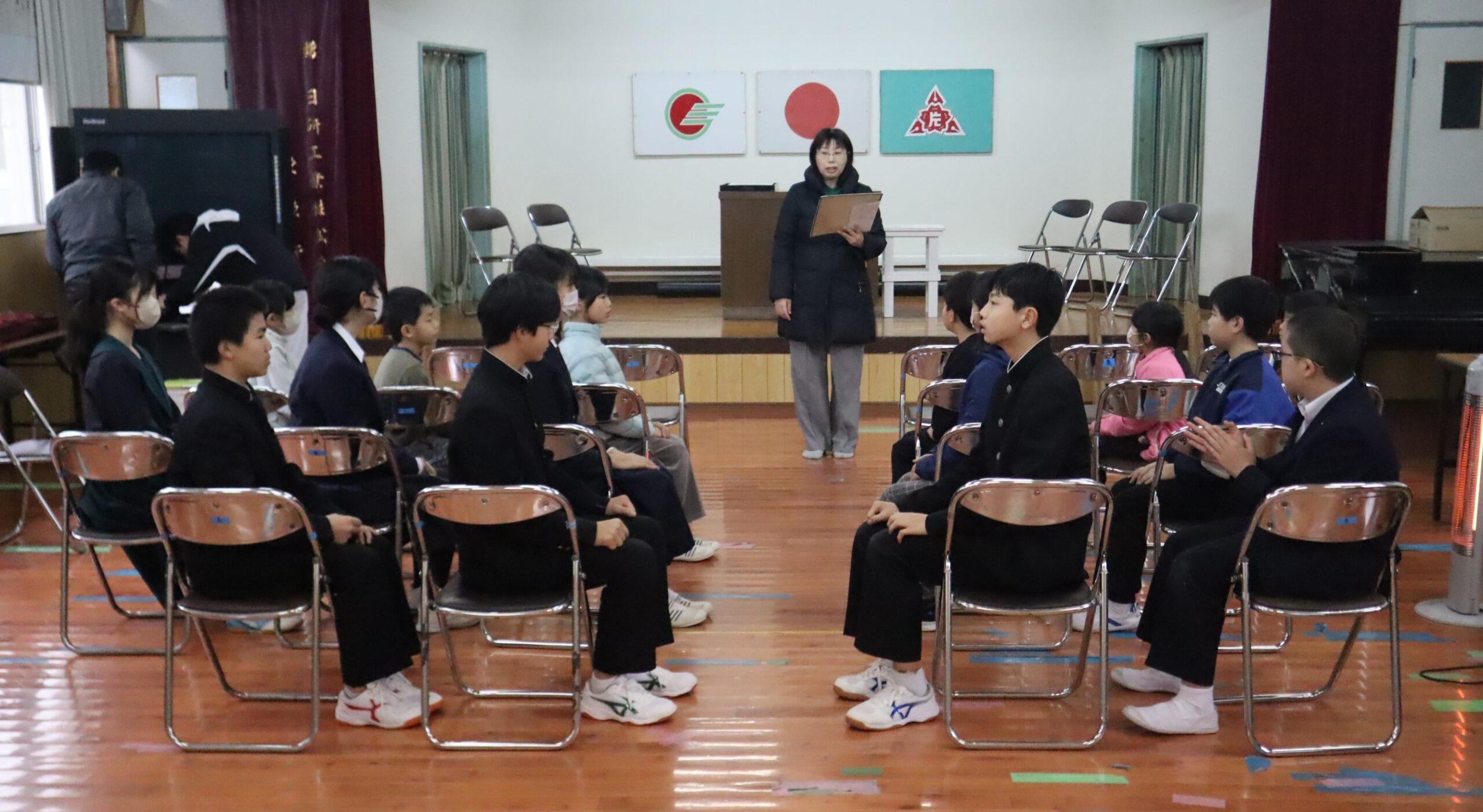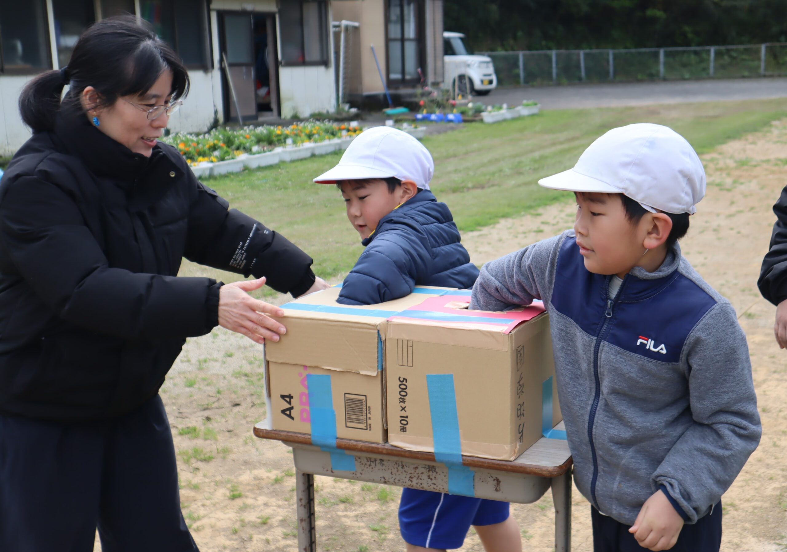 今日の片泊は寒いです。でも子どもたちは元気いっぱいです。 今日は、「卒業式予行」と「お別れ会」がありました。 ↑卒業式予行の様子です。卒業式まであと、もう少し! みなさん、頑張ってます! ↑お別れ会の様子です。最初は「だるまさんがころんだ」次は「借りもの競争」でした。みんな、走る!走る!😉
