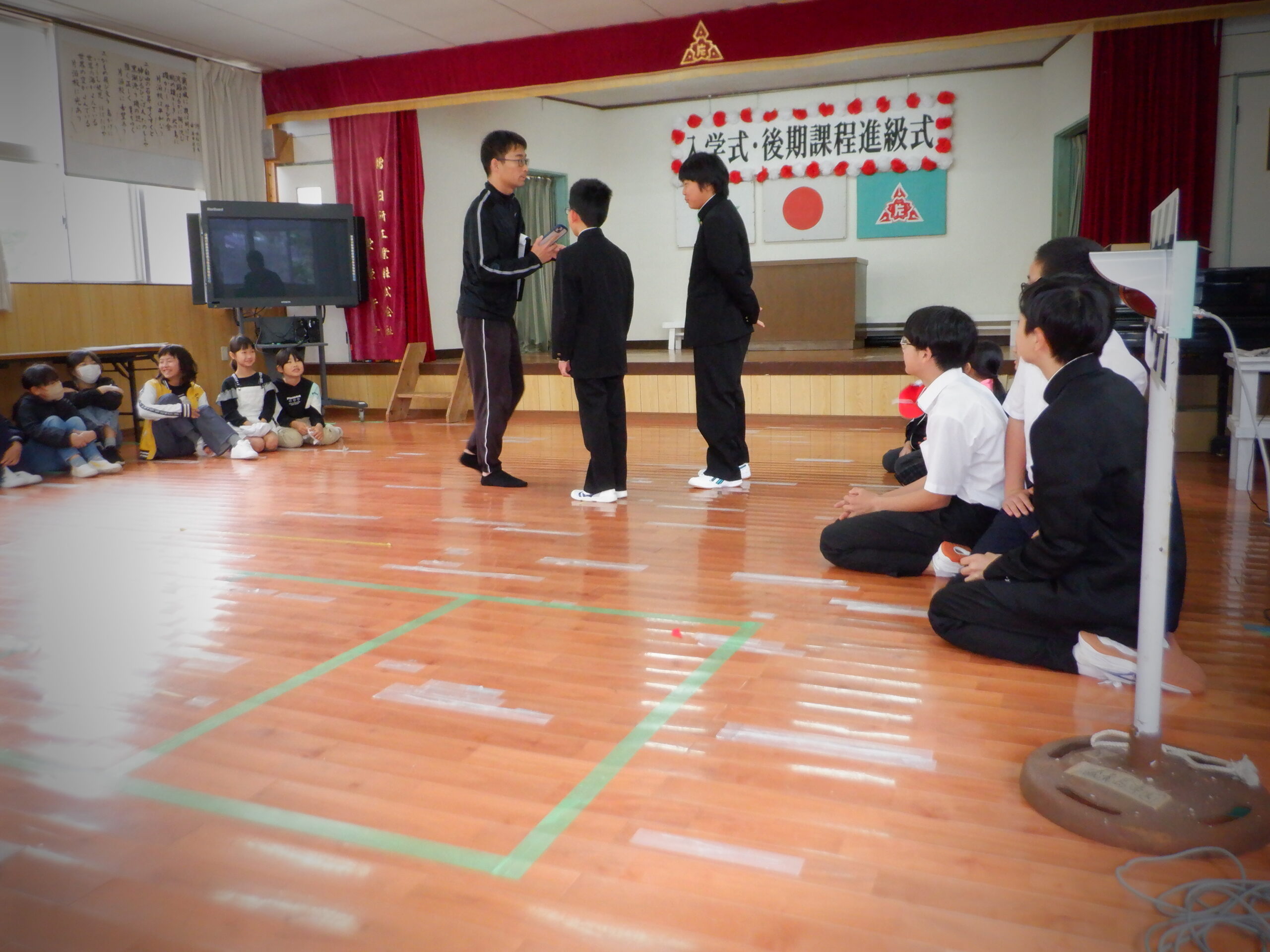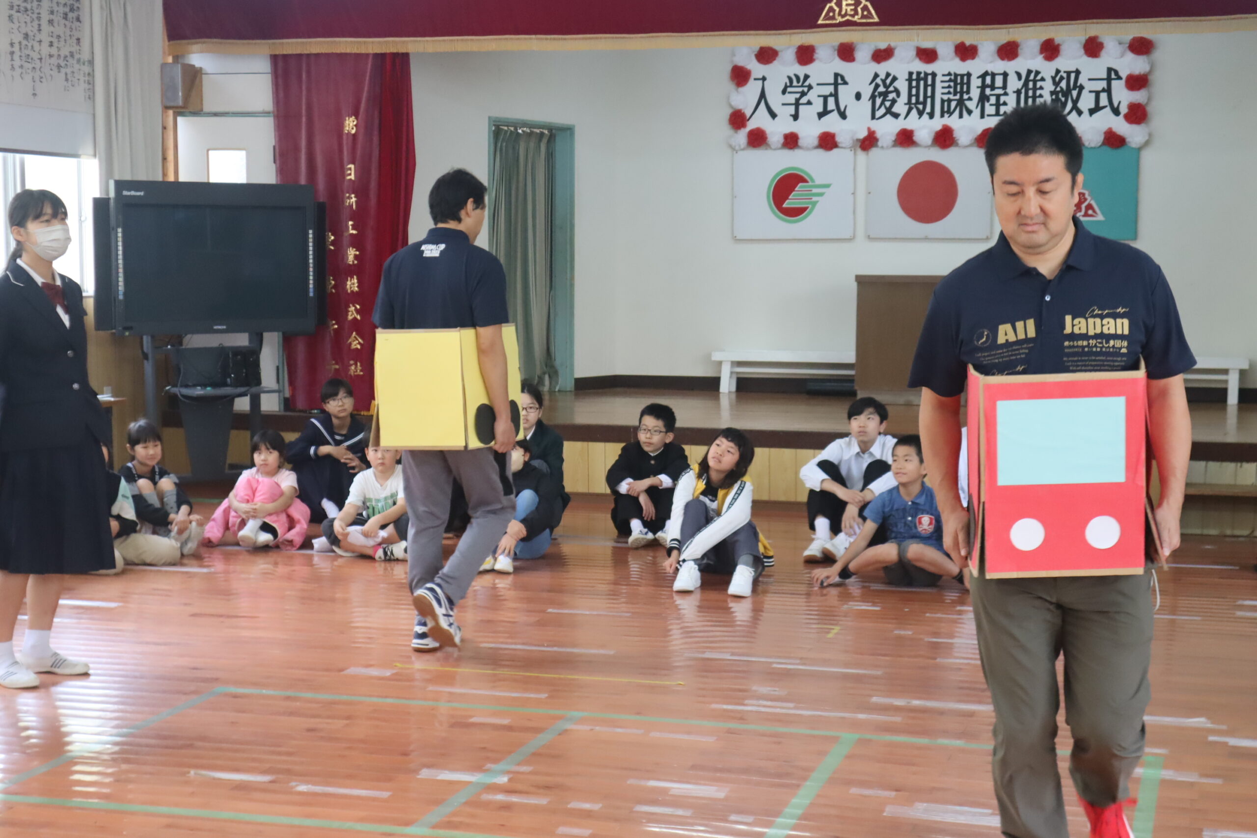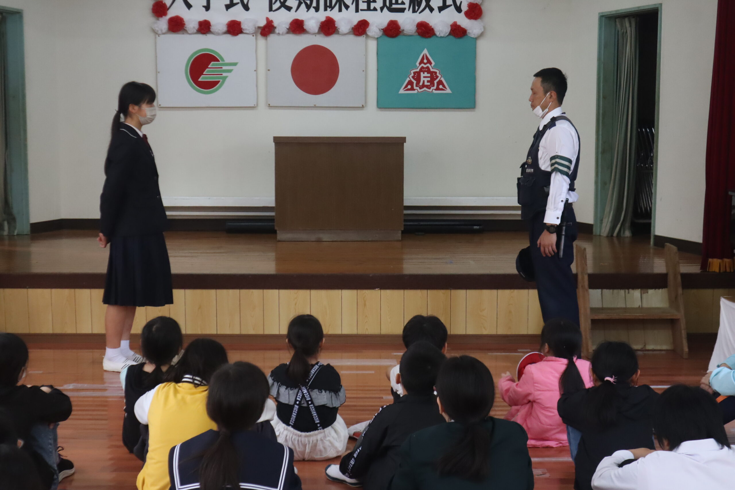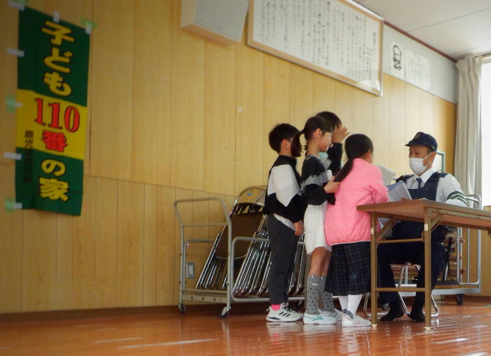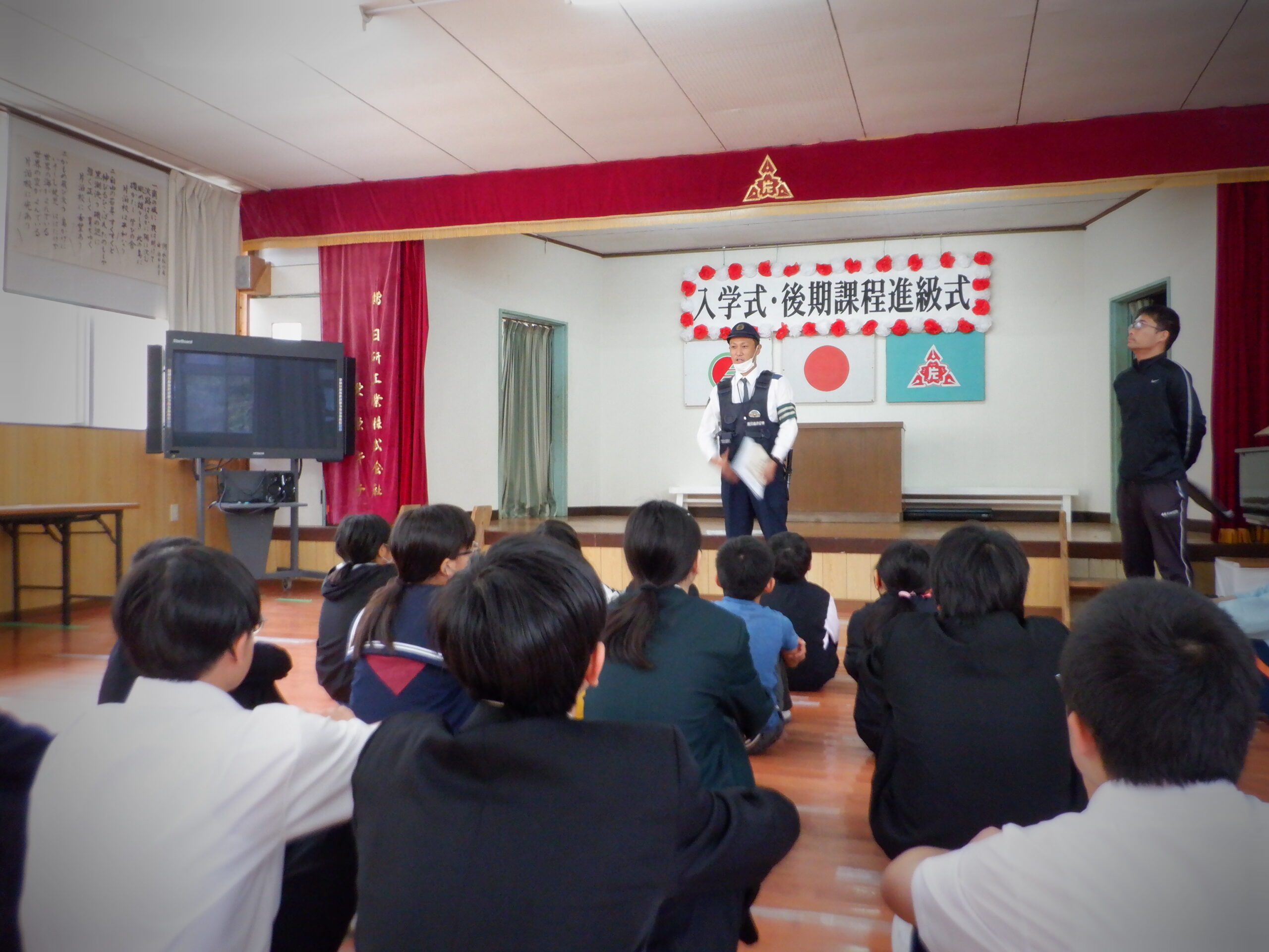 今日は,危機回避訓練・交通安全教室を開き,硫黄島からお巡りさんに来ていただきました!