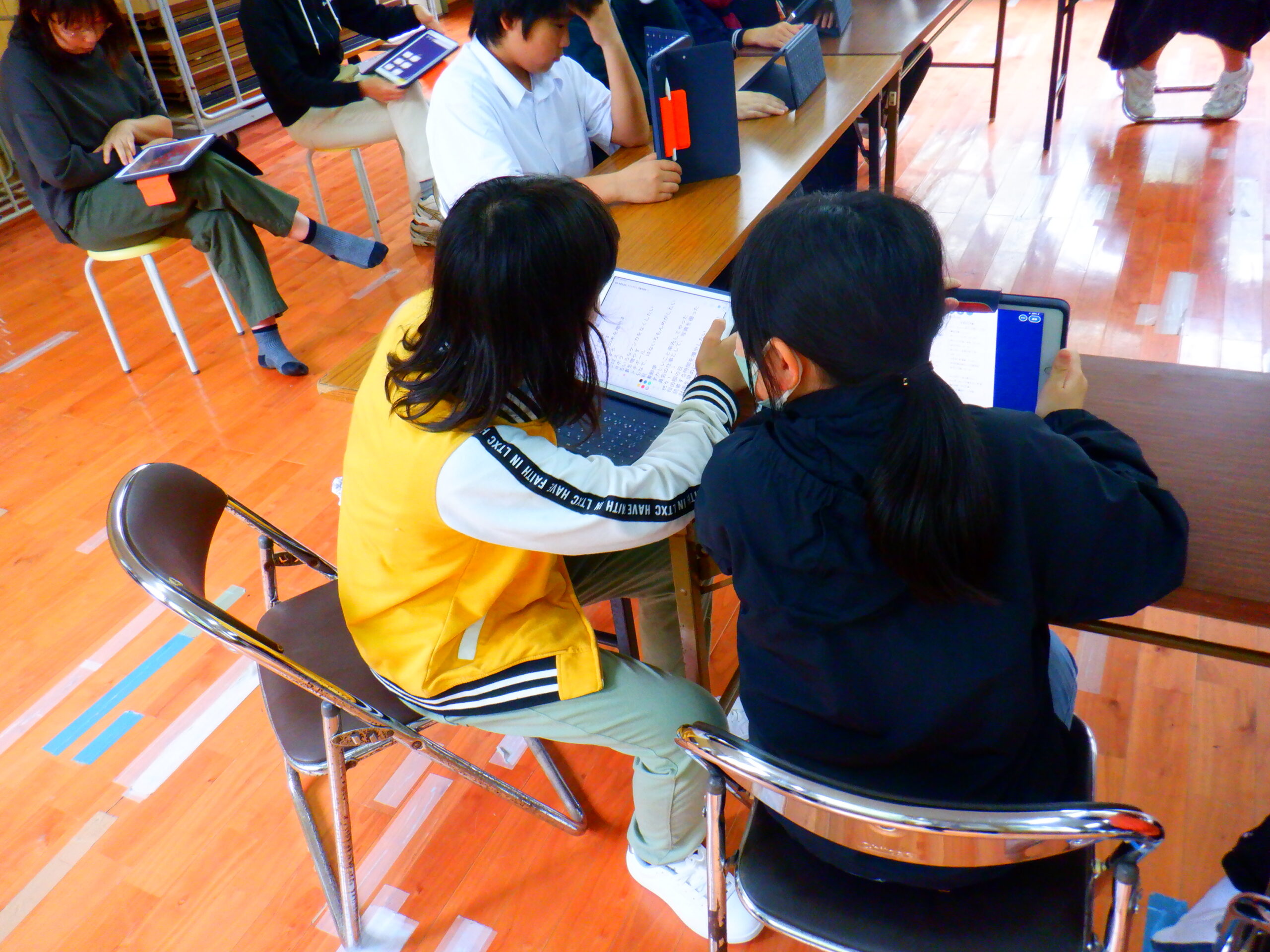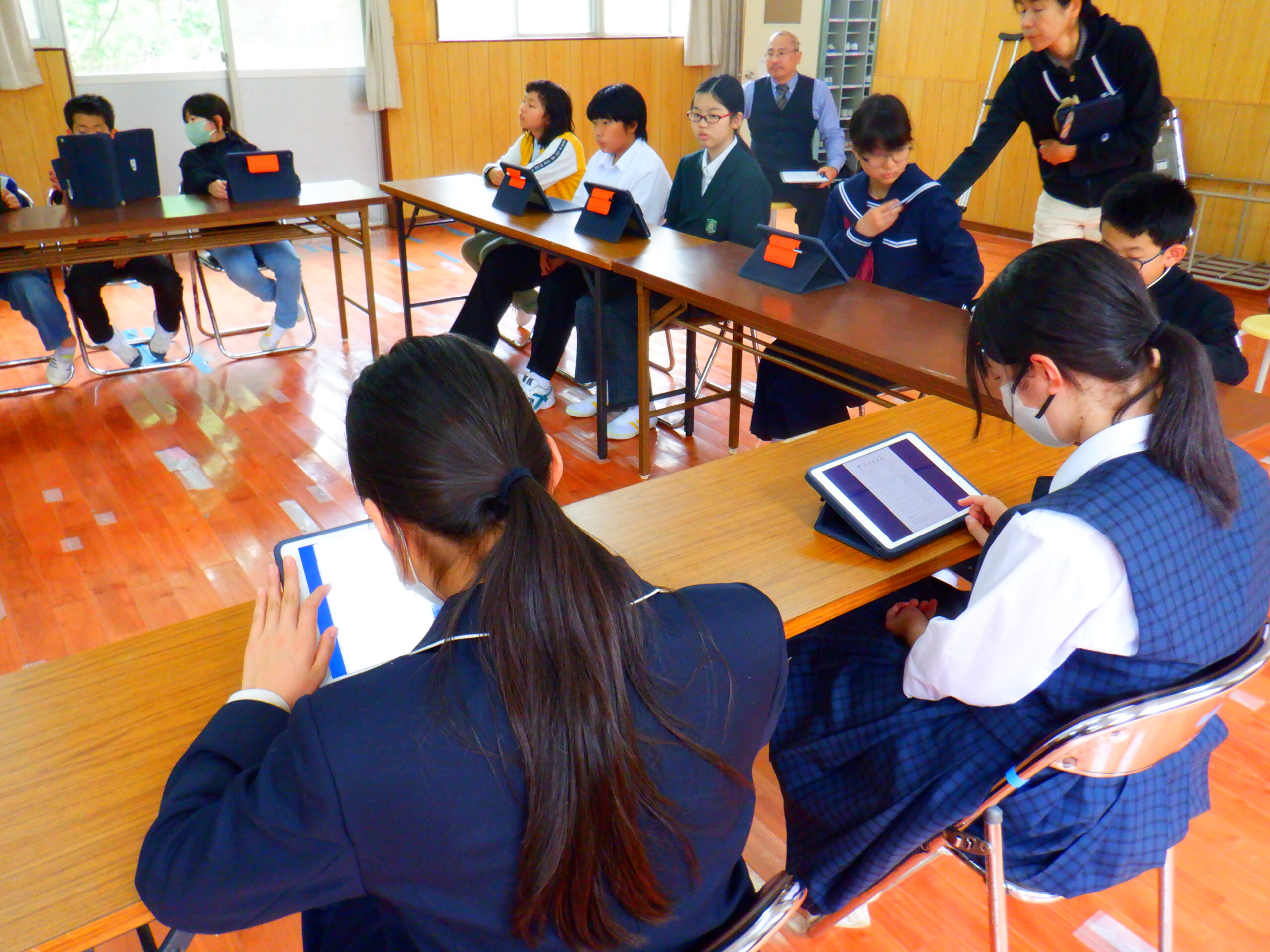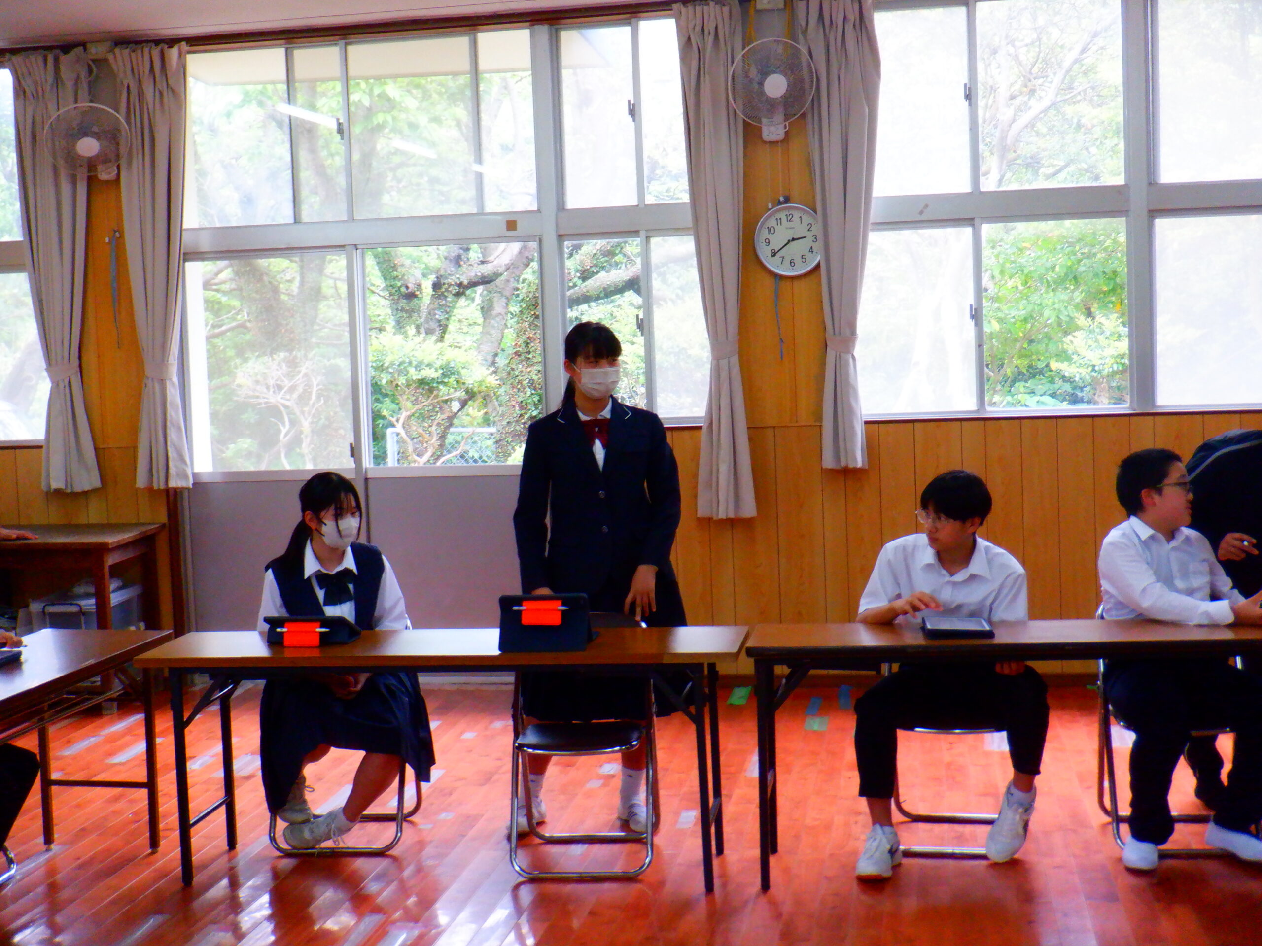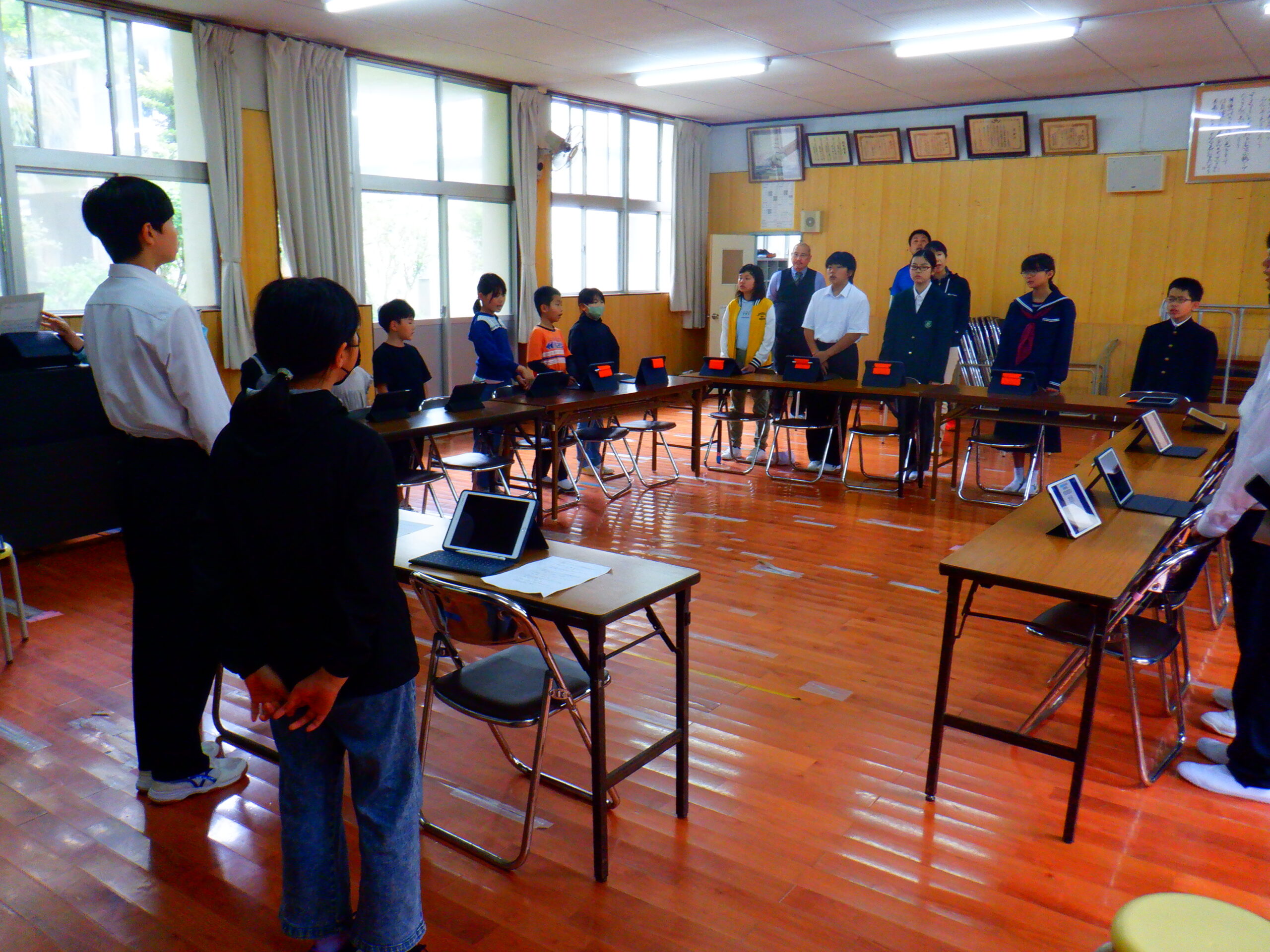 5時間目は,前期児童生徒総会が行われました。昨年の活動報告と今年度の活動計画を報告してから,ふれあいセンターの使い方や今年度児童生徒会で取り組んで欲しいことについて話し合いました。