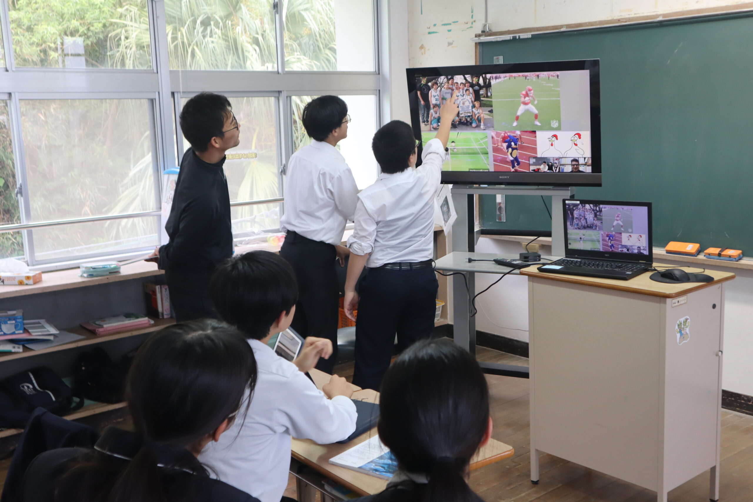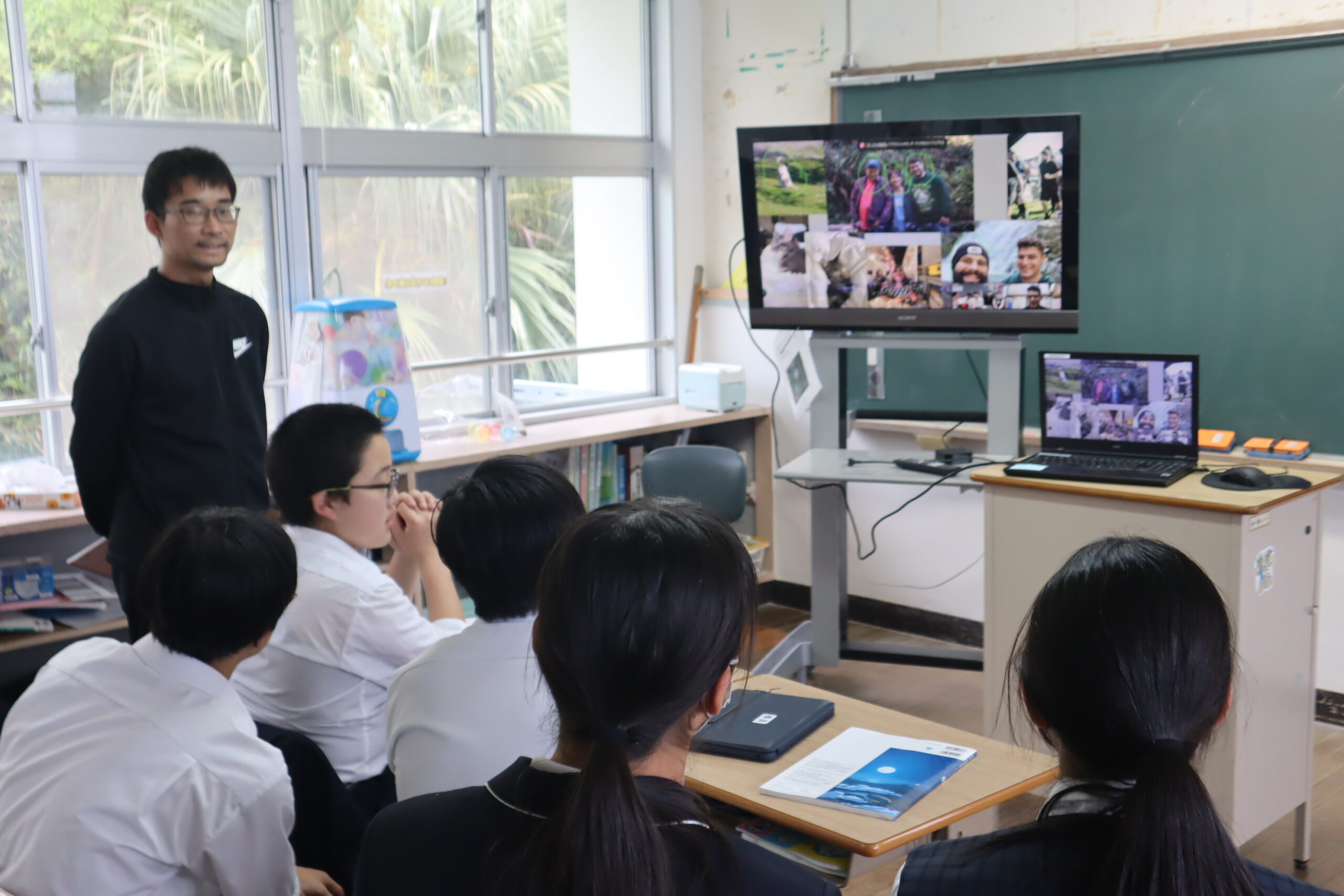 今日は、三島大里学園のALTの先生が遠隔で英会話の授業をして下さいました。