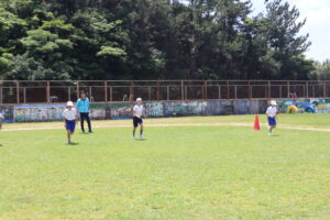 その後,外で50m走やソフトボール投げ,20mシャトルランをしました。