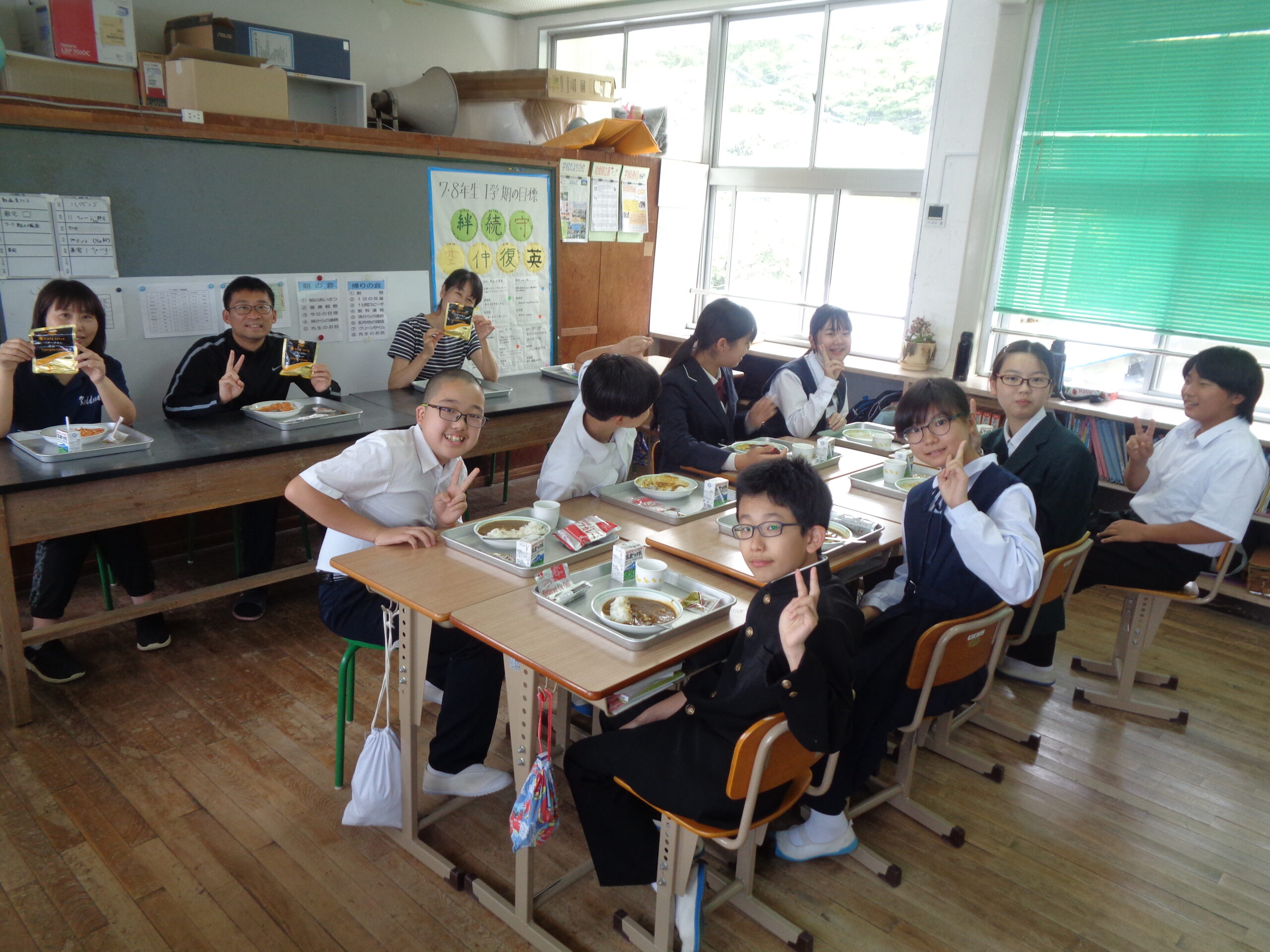 ということで振替休日はなくなり,今日は通常通りの登校でした。しかし,給食は止めていたため,今日は学校に保管している非常食を昼食としていただきました。メニューはカレーライスです。給食調理員さんに炊いていただいたご飯に非常食のカレーをかけ,いただきます。とてもおいしいカレーで,よろこんで食べていた子どもたちでした。