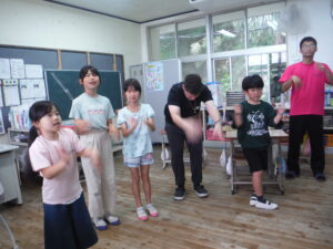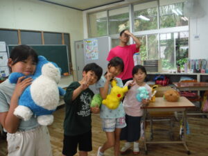 その後,教室でポケモンのぬいぐるみを抱いてダンスを踊りました。