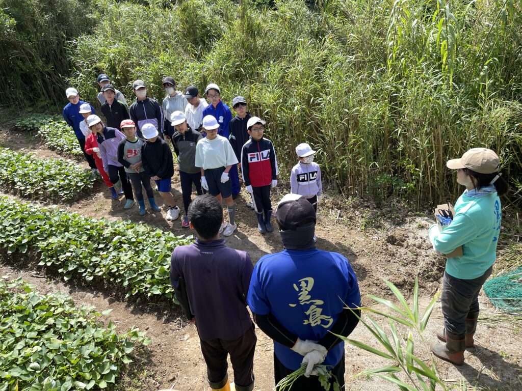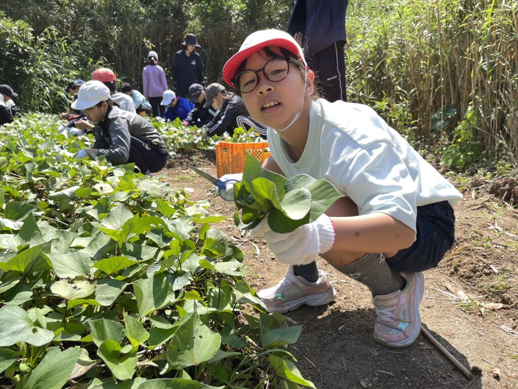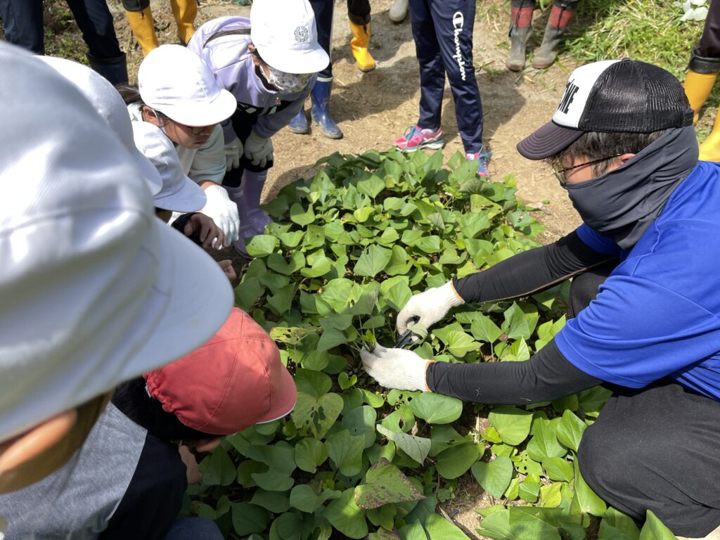 今日は「地球科」の学習で、さつまいもの苗を切りに行きました。 今週末に行う「芋の苗植え」に使うためのものです。 今回はみしま焼酎無垢の蔵の方々に教えて頂きながら活動しました。 初めての体験! 子どもたちも真剣に取り組んでいました。 30分ほどで400本の苗が収穫できました^-^ 無垢の蔵の皆さん、ありがとうございます!