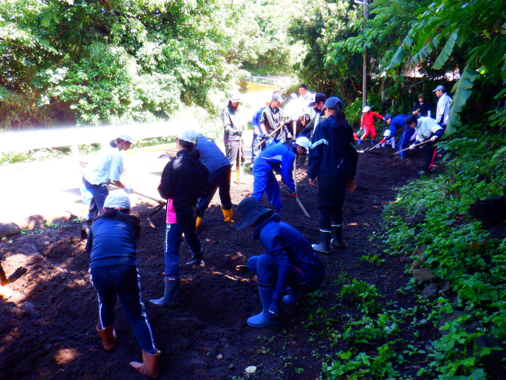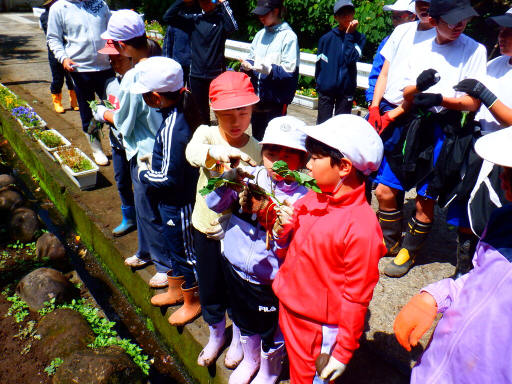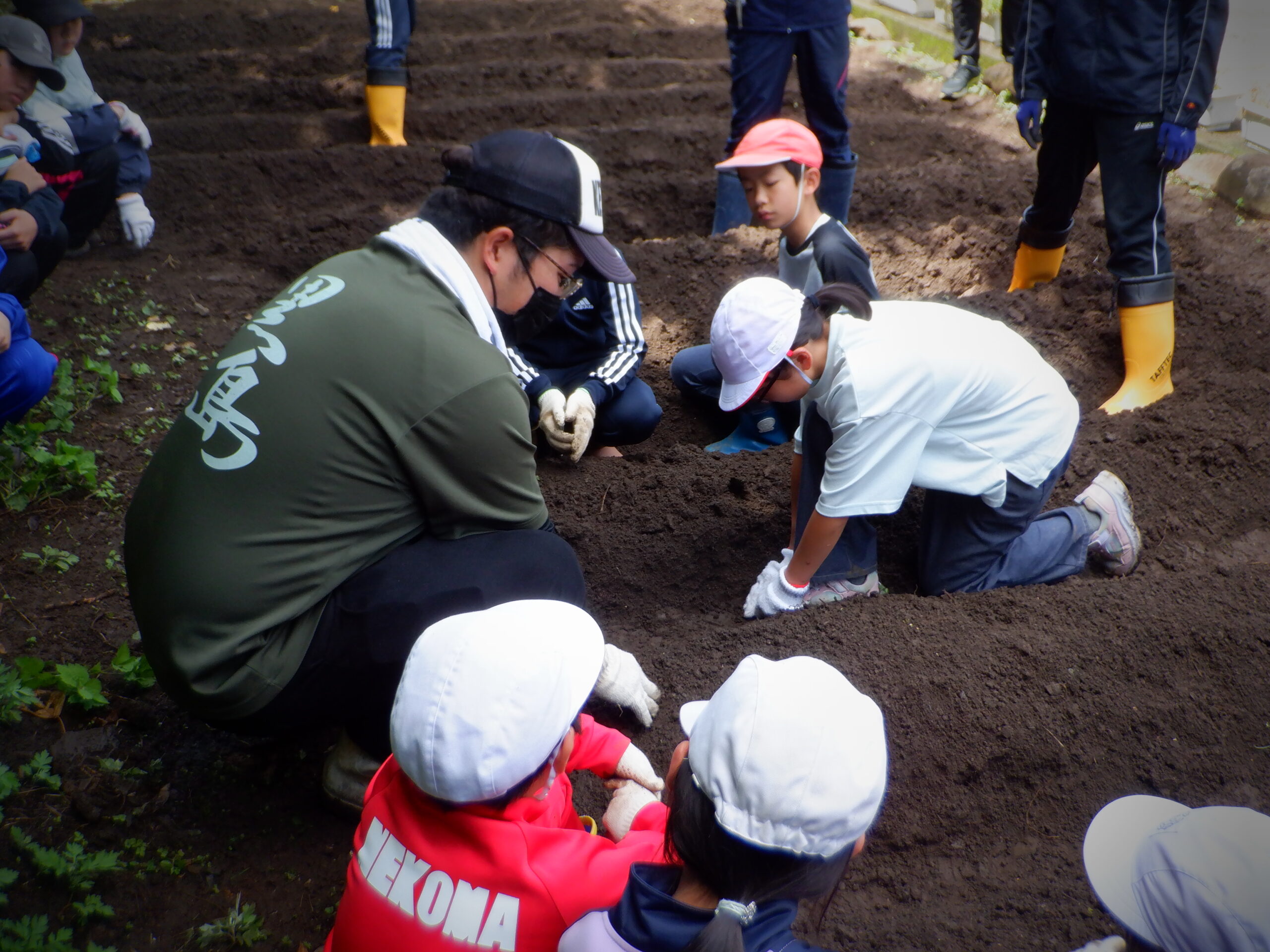 今日の2・3校時は、ジオ科でいも苗植えをしました。苗は、今週の月曜日に自分たちで切ったものです。 まずは、三島焼酎「無垢の蔵」の方から畝の作り方と苗の植え方を教えていただきました。 葉を3枚は地上に出し、あとの葉は地中にうめてもよいということでした。まっすぐさすと大きないもが収穫できるそうです。 作業が終わった後は、質問タイムでした。たくさんの質問にも快く答えていただきました。秋には大きないもが育つといいです。