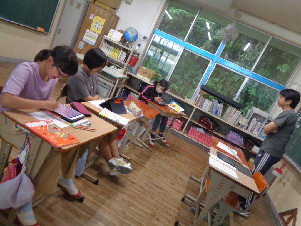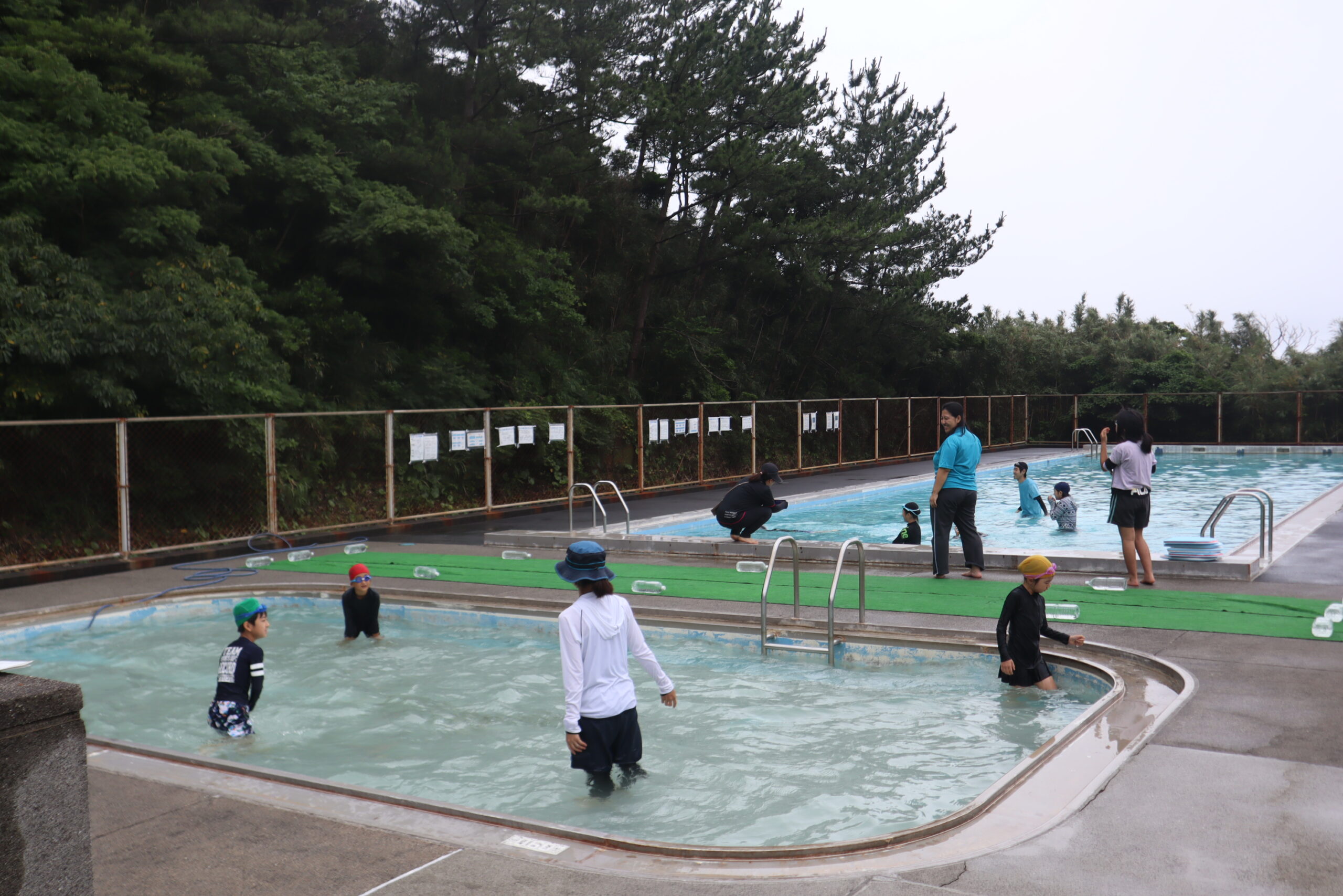 先週に引き続き,今週も大里学園の子どもたちが水泳学習のために来校しました。 今日も合同授業を楽しむ子どもたち。回を重ねるごとに,子どもたちの仲が深まっているように感じます。 合同学習後は,お楽しみの水泳です。楽しそうな声が聞こえてきました。 ちなみにに,今年度より,本校のプールを「みしま村子育て広場 野いちご」さんも使っています。本校のプールを通して,黒島にいる子どもたちが楽しい時間を過ごしてくれることをうれしく思います。