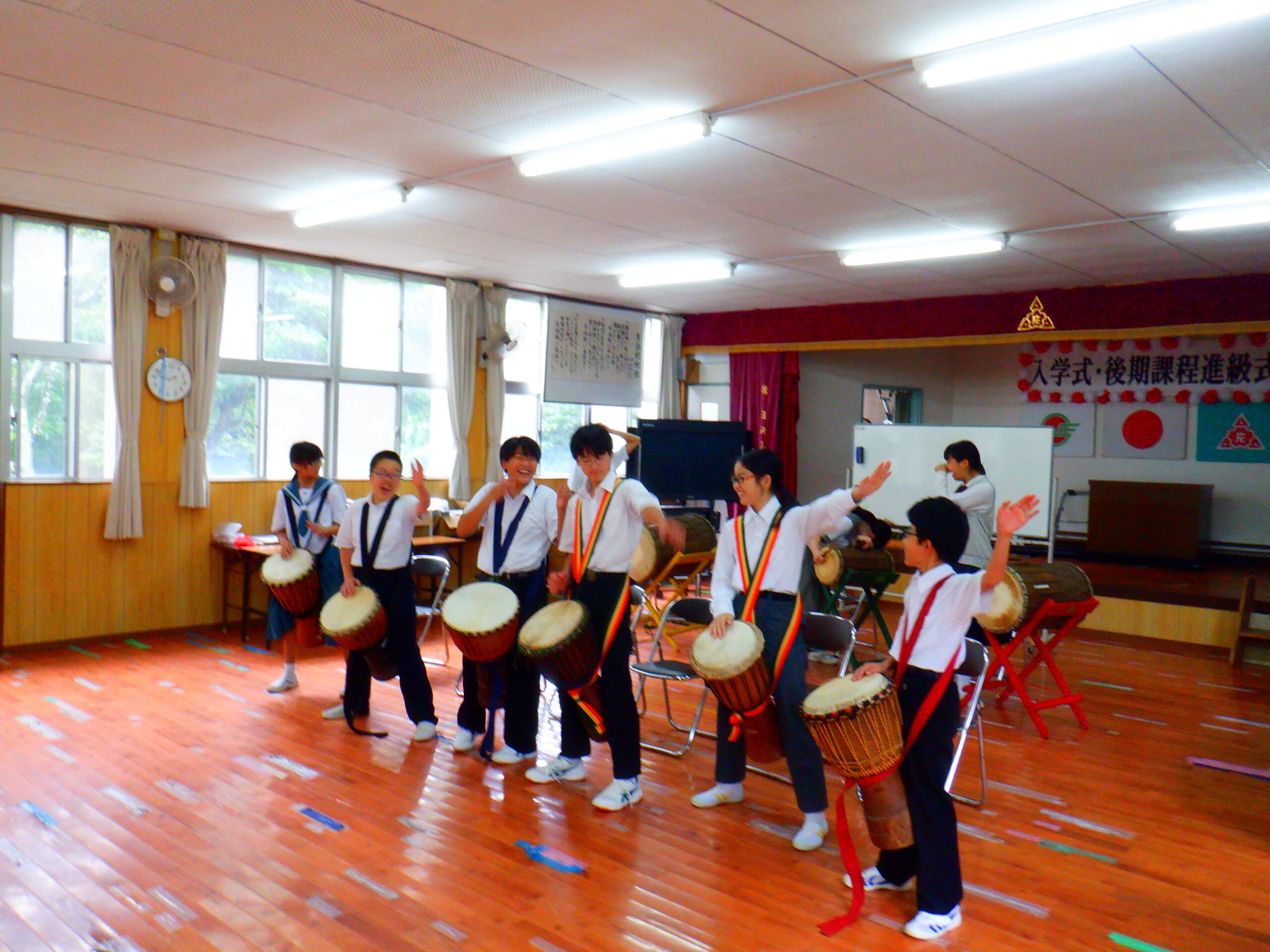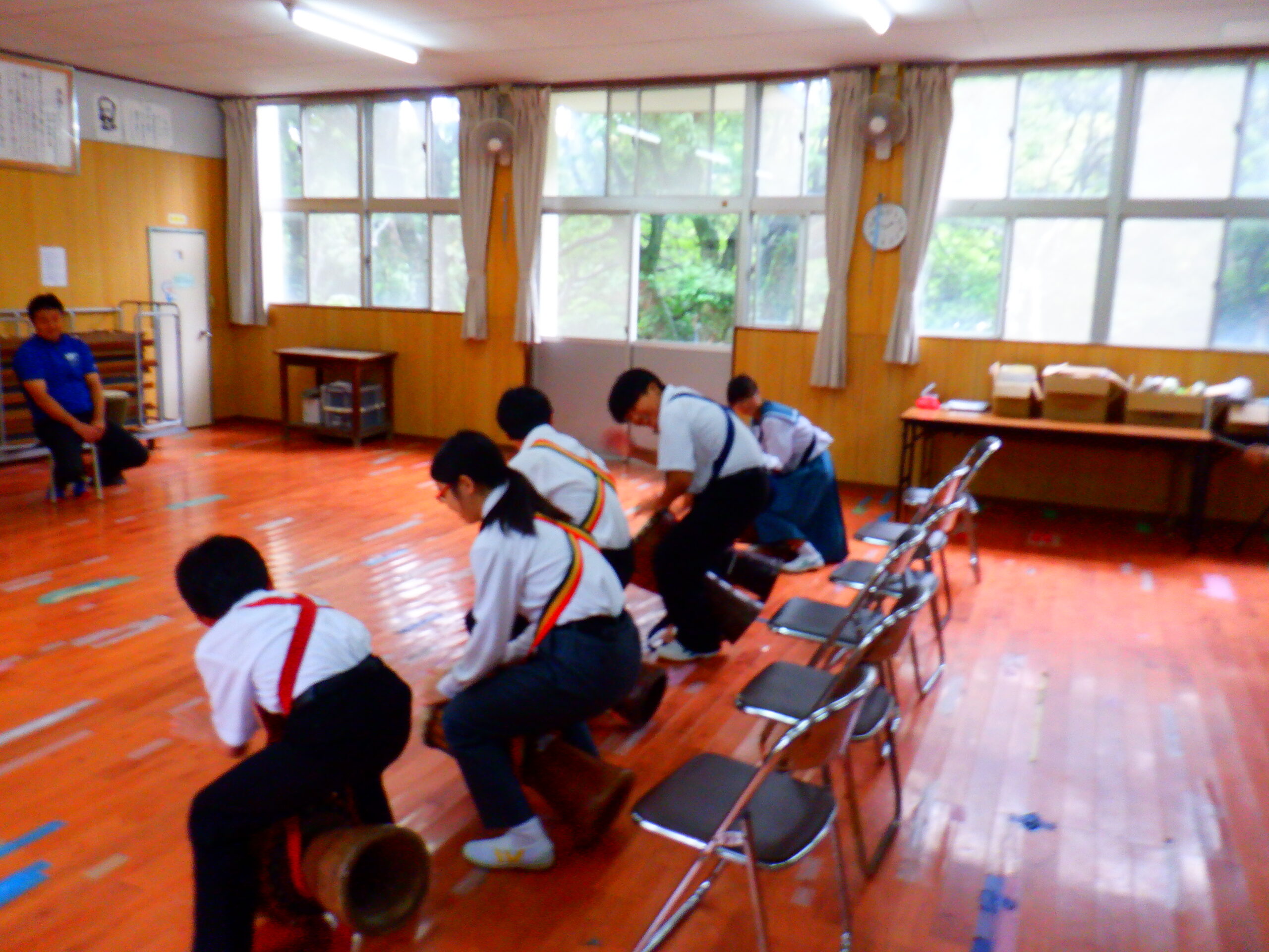 今日から,昼ジャンベは後期課程生だけとなりました。 そう。夏の祭典に向けて本格的にスタートするためです。 中間テストも終わり,気持ちは夏の祭典へ。 夏の祭典で演奏する曲を練習していますが,もうちょっと練習が必要のようです。 これから,1ヶ月。先日の徳田先生&ジャンベ留学生と一緒にやった楽しい演奏を 思いだし,聞いている人も楽しくなる演奏を目指して頑張って欲しいと思います。 でも,まずは,来週の交流学習が楽しみな生徒たち。